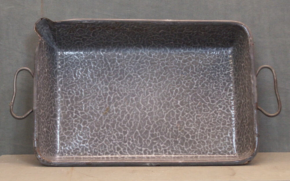braadslede, gewolkt grijs emaille met twee handgrepe...