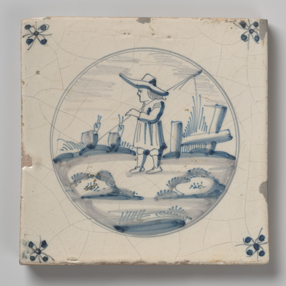 Tegel van keramiek met tinglazuur, voorstellende: Je...