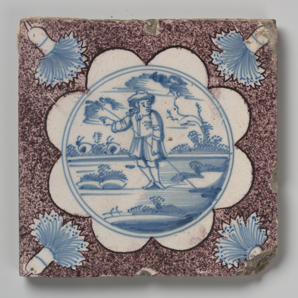 tegel van aardewerk met tinglazuur, voorstellende: h...