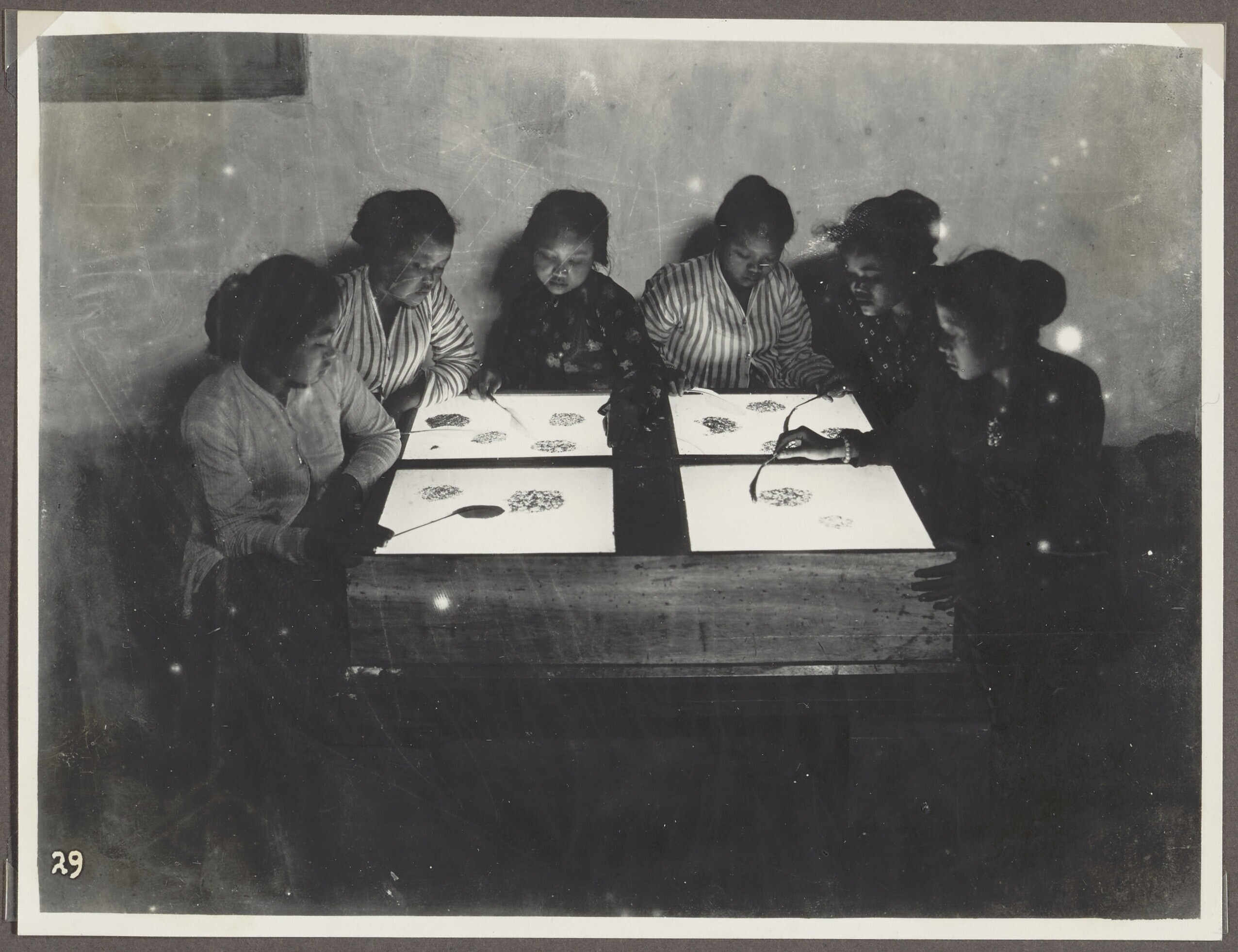 Women sorting cinchona seeds on the Tjinjiroean plan...