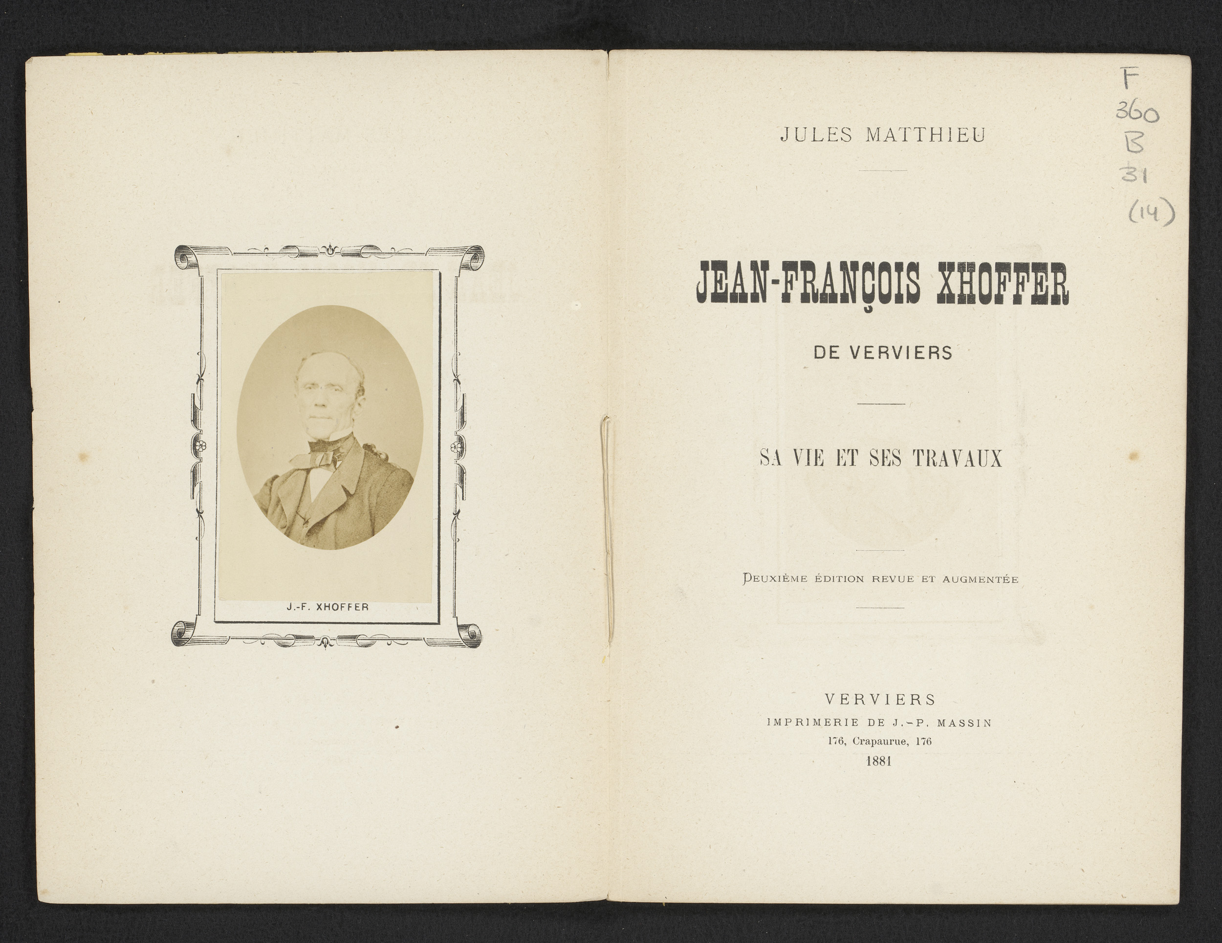 Jean-François Xhoffer de Verviers : sa vie et ses tr...