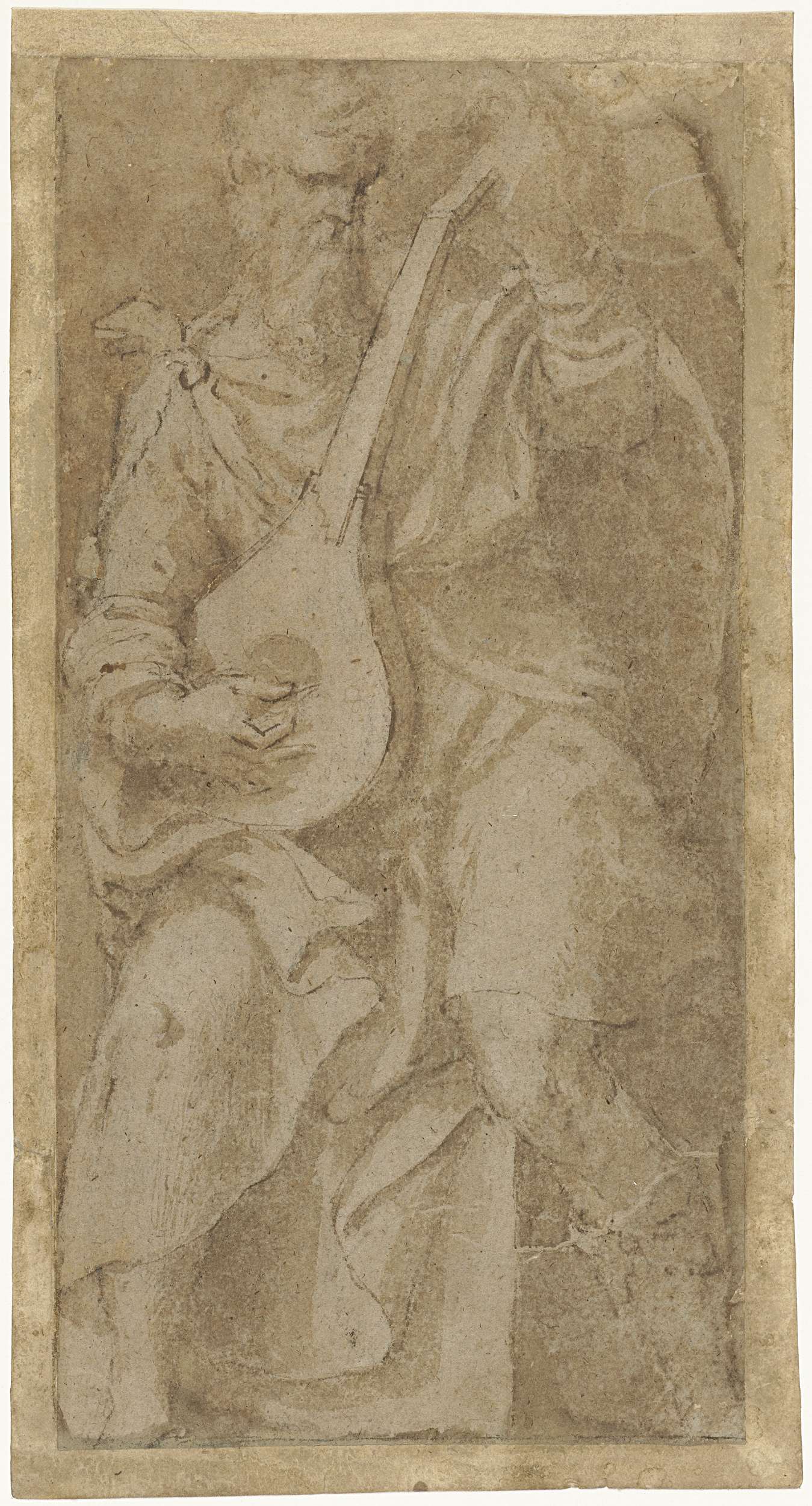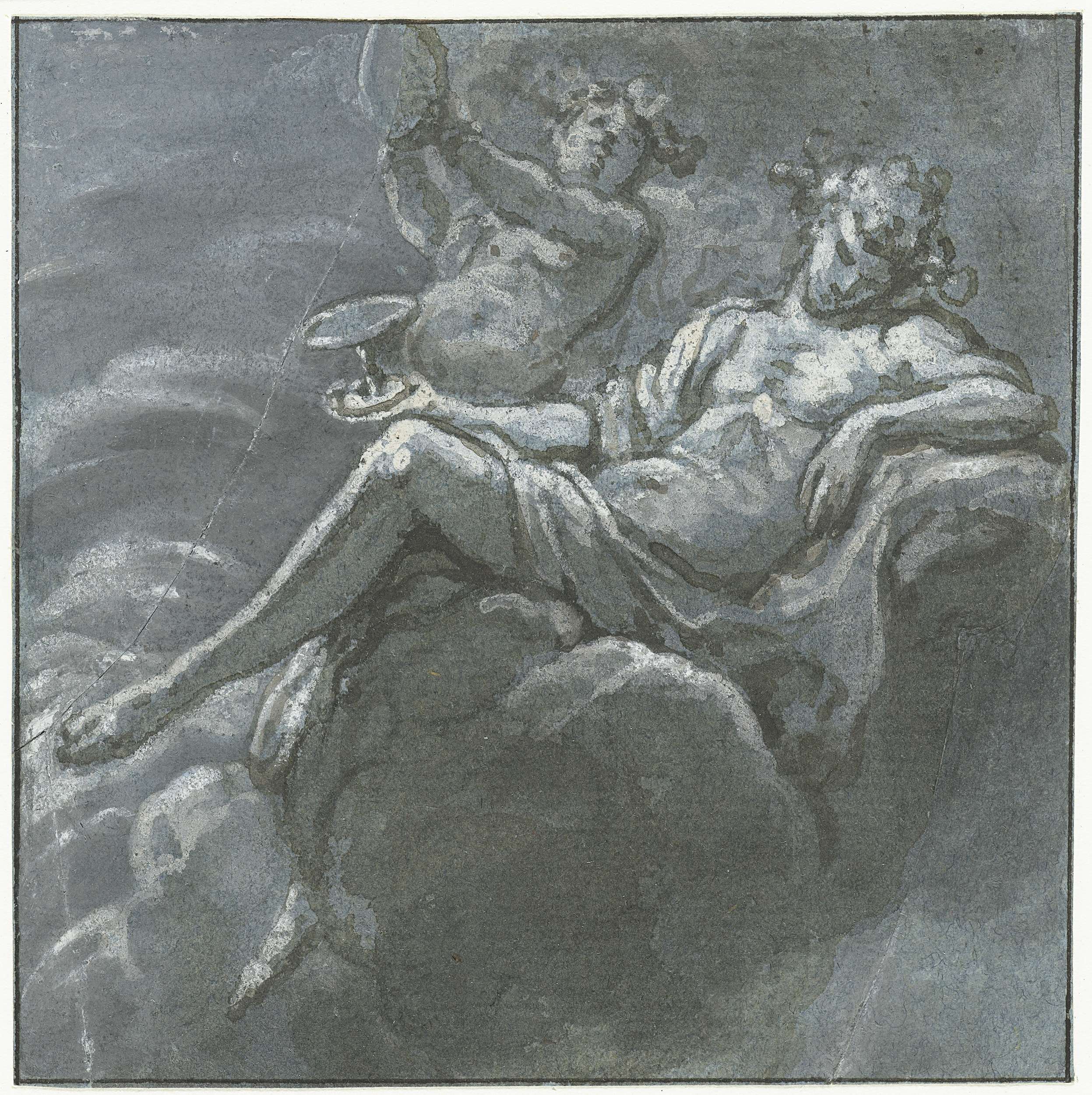 Ontwerp voor een glas in loodraam met putto in een c...