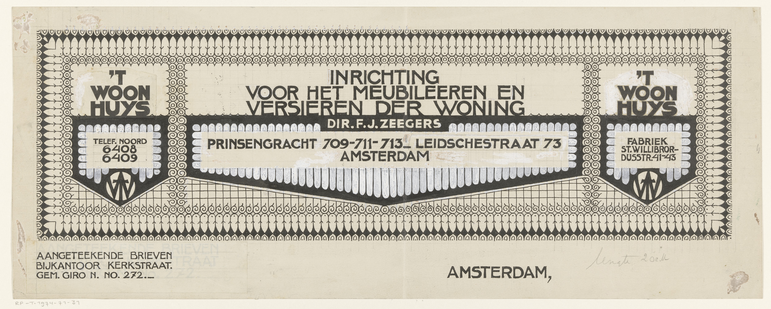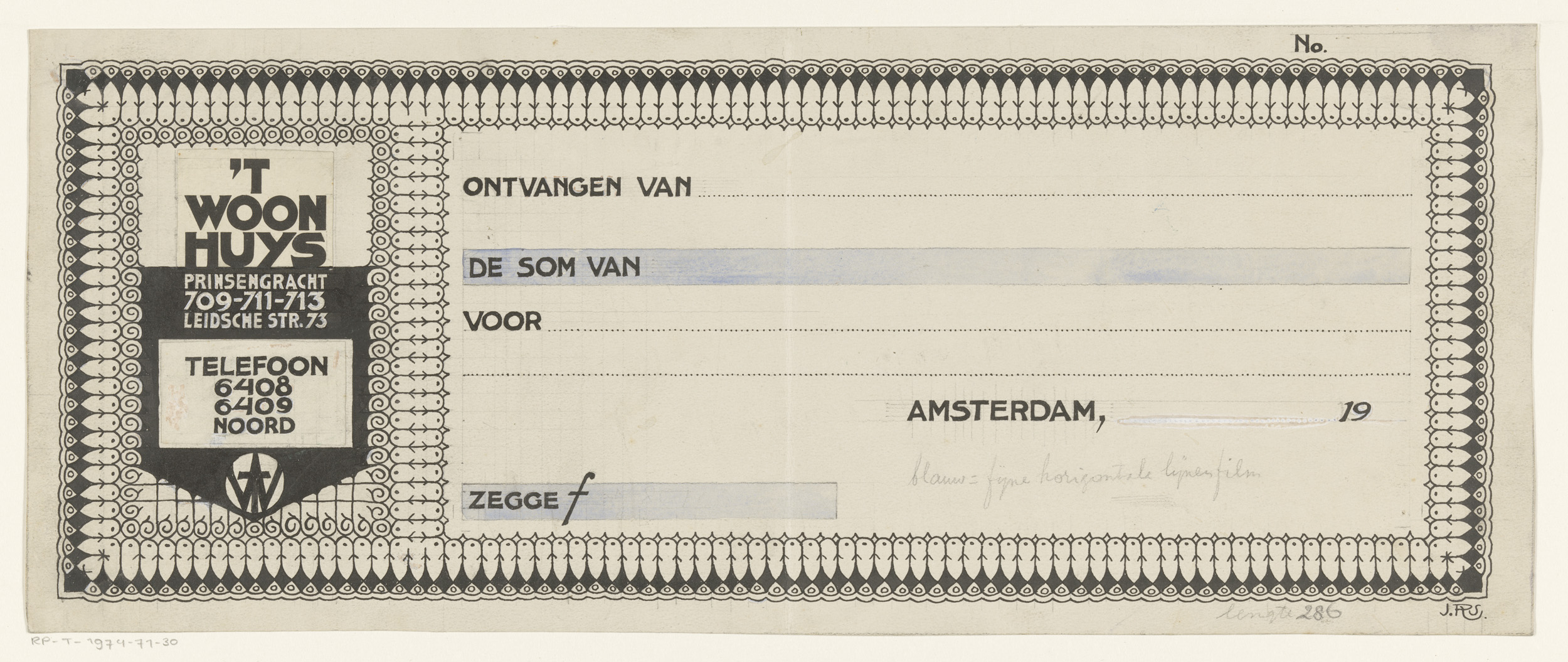 Ontwerp voor een kwitantie voor meubelfabriek 't Woo...