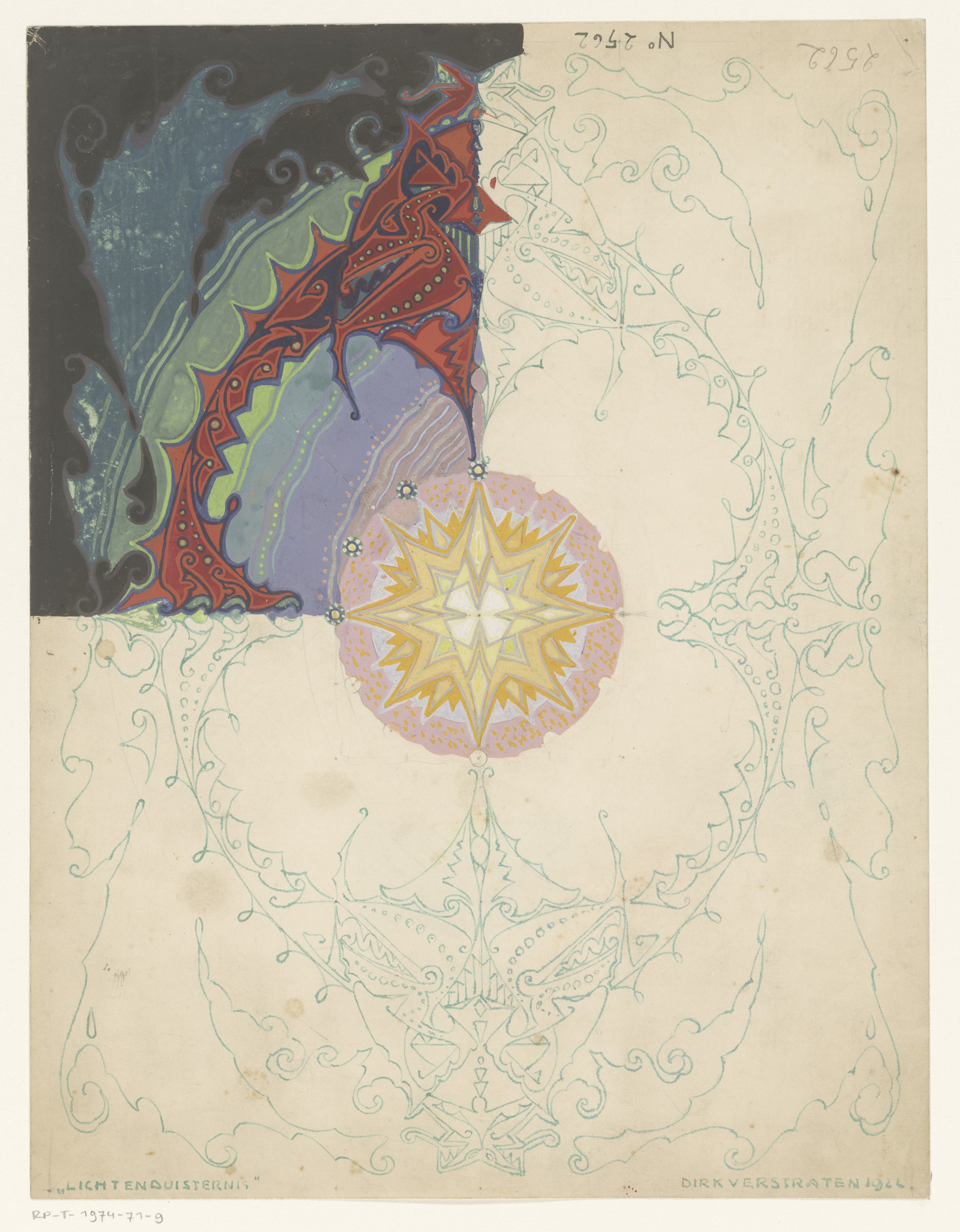 Ontwerp voor een tapijt met een fantasiefiguur
