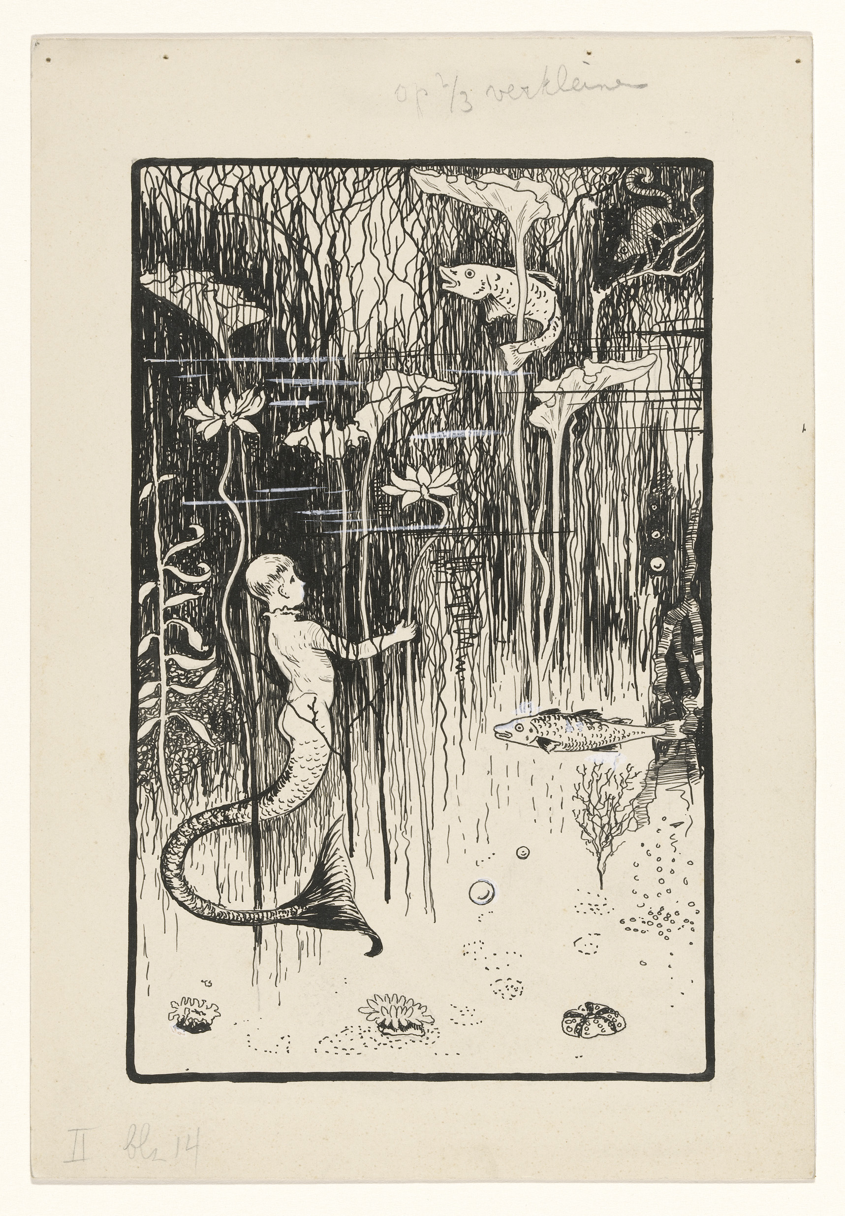 Ontwerp voor een glas in loodraam met een vis