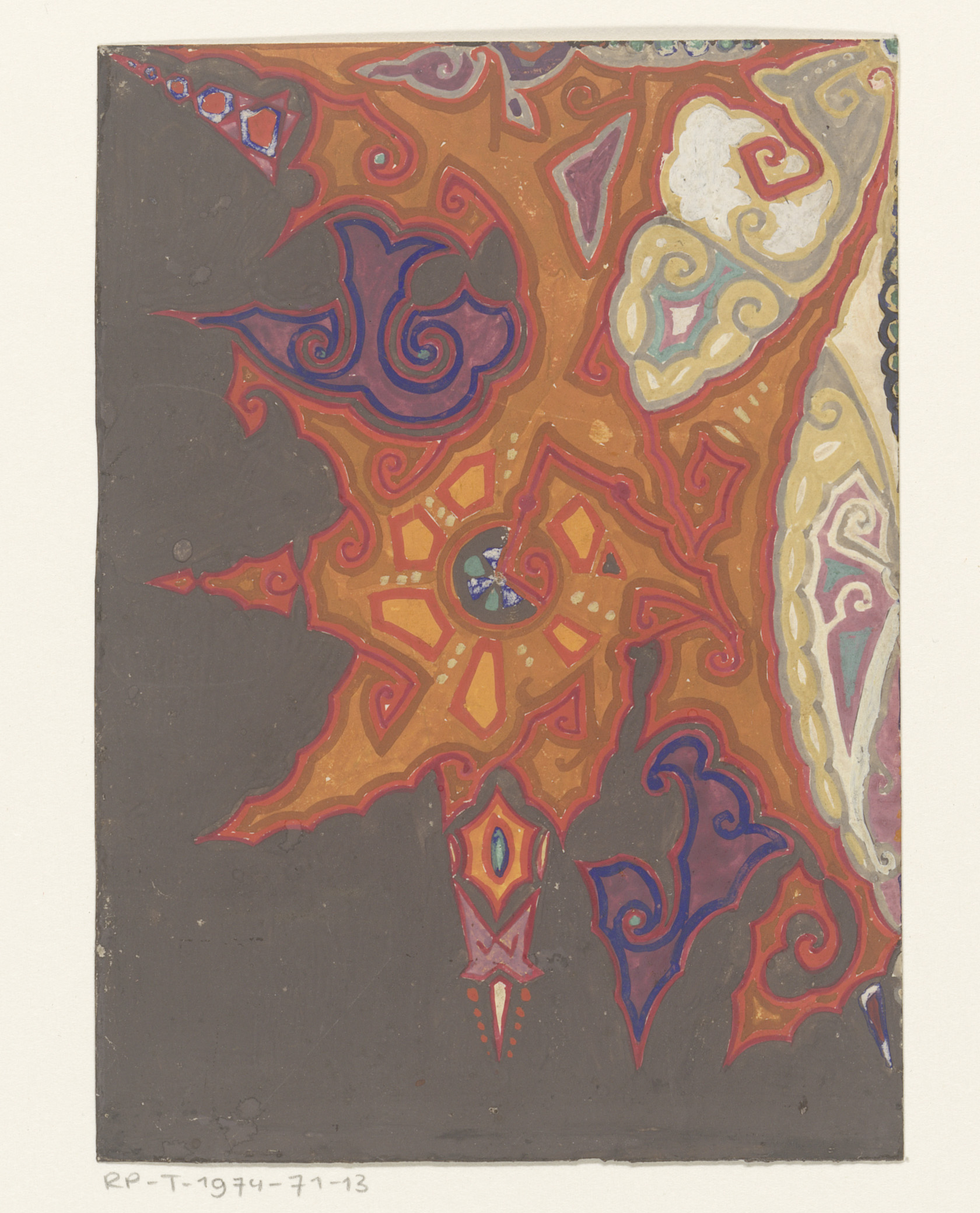 Ontwerp voor een tapijt met een ster in een georname...
