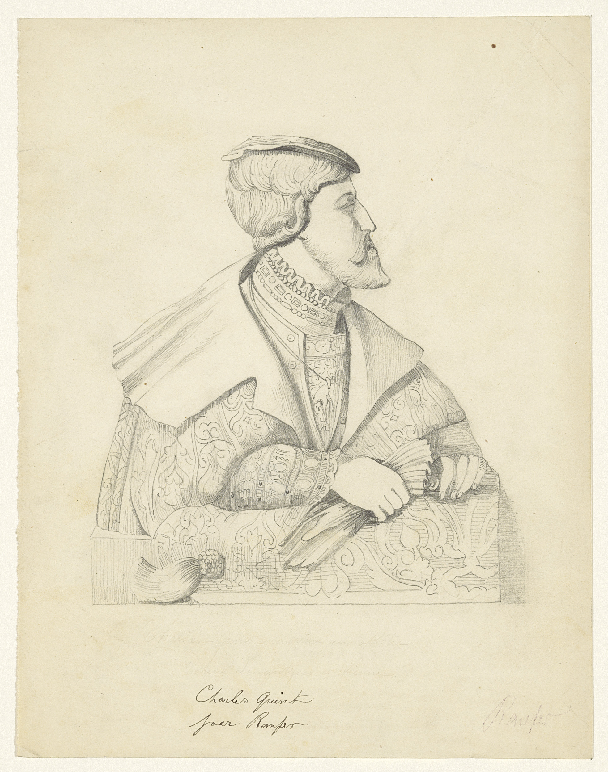Portret van keizer Karel V naar een sculptuur in albast