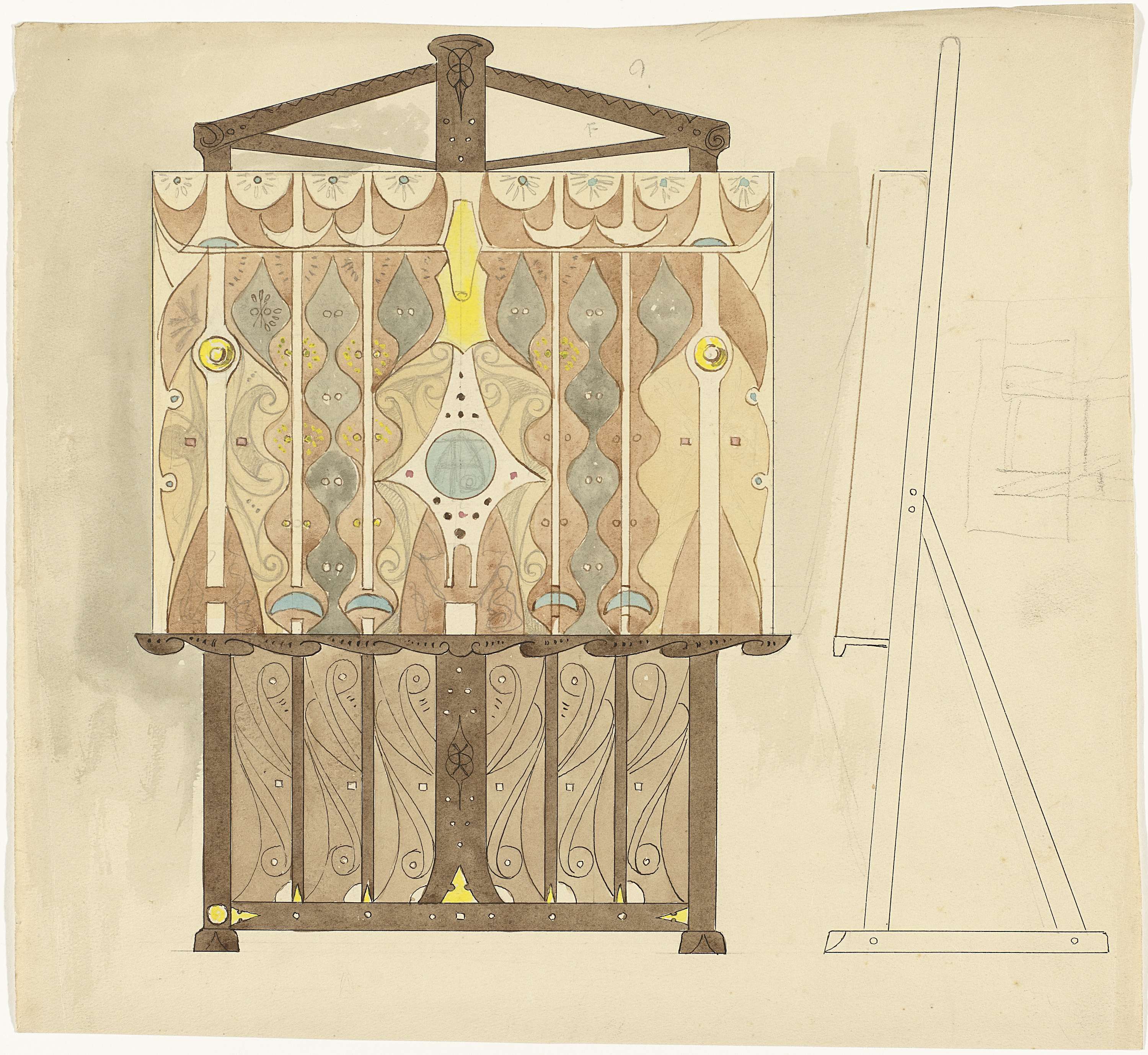 Ontwerp voor een glas in loodraam met ornamenten en ...