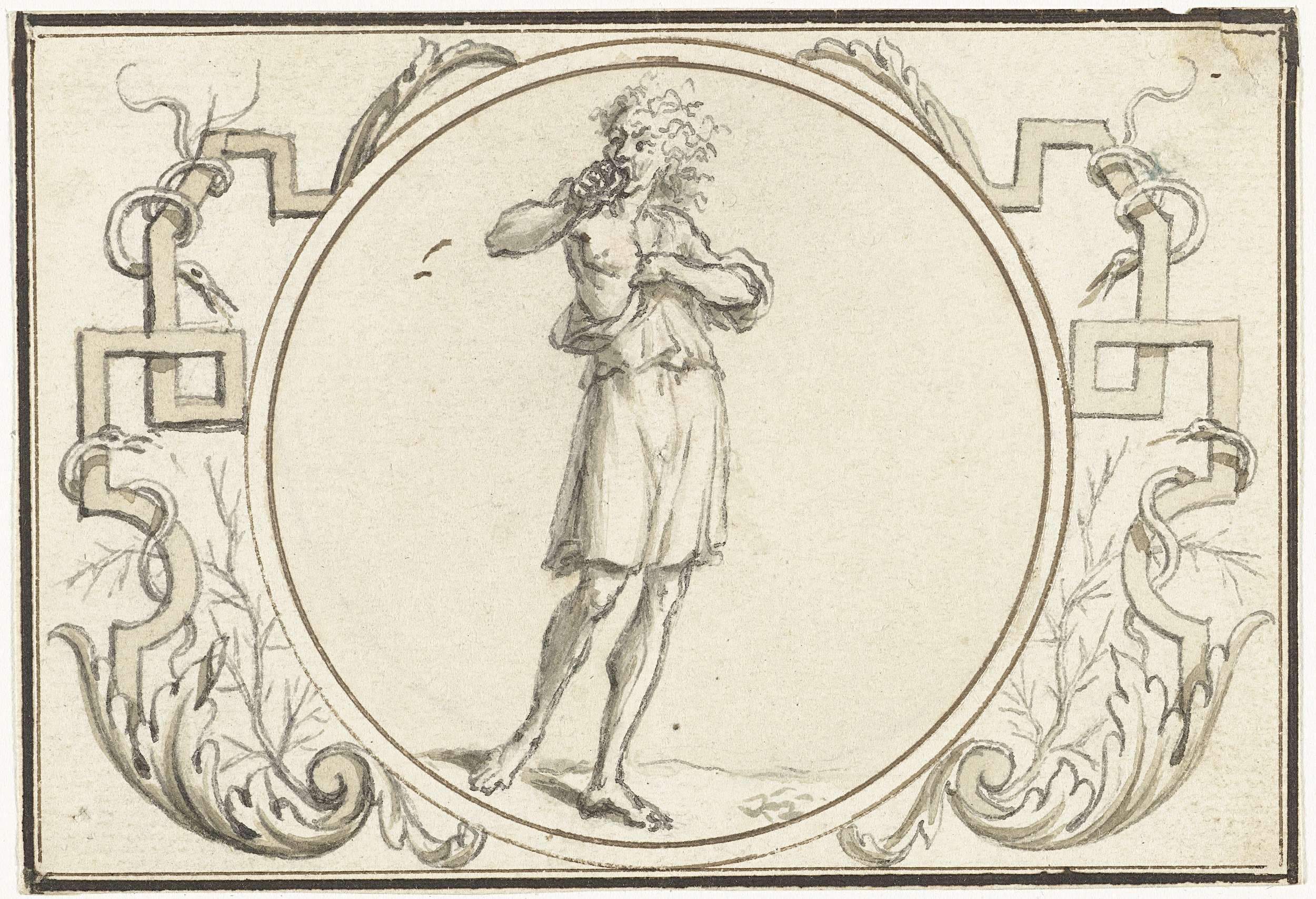 Ontwerp voor een glas in loodraam met cartouche en g...