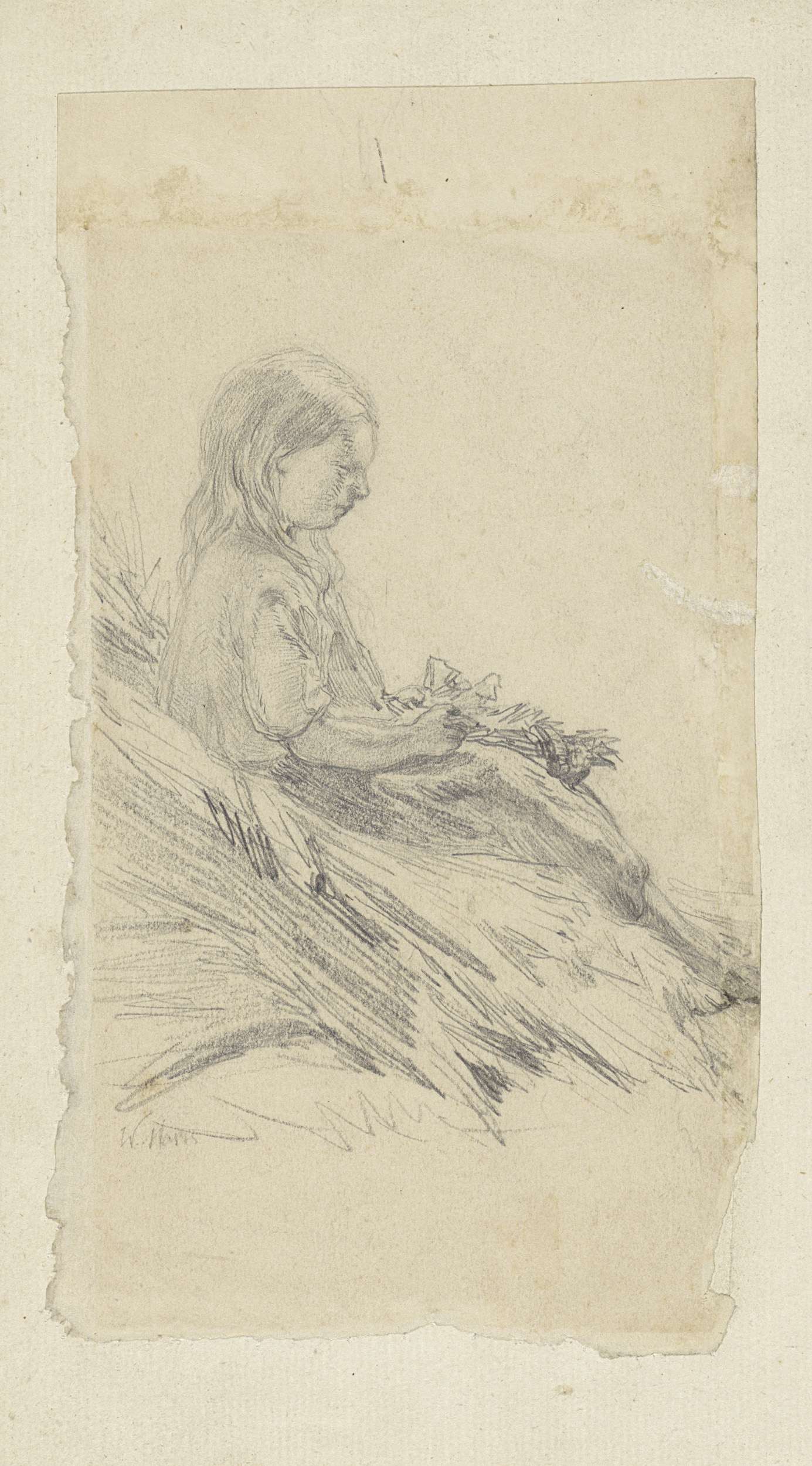 Zittend meisje, in profiel naar rechts