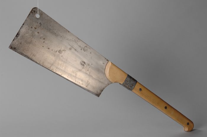 Varkenshakmes met handvat, gebruikt in openbaar slac...