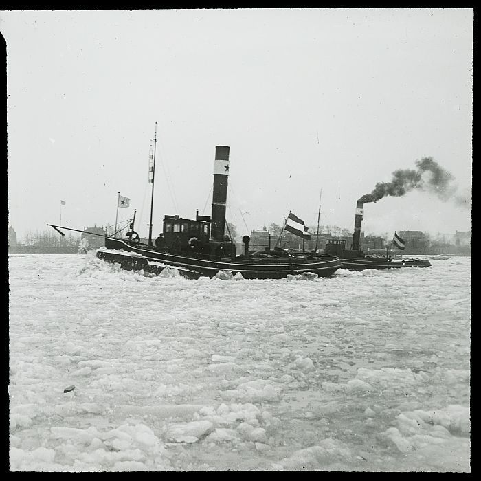 Glasdia, stoomsleepboot als ijsbreker op de rivier, ...