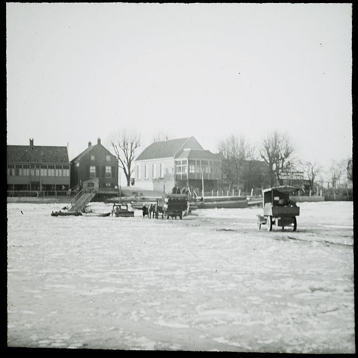 Glasdia, wandelaars op de dichtgevroren Maas, winter...