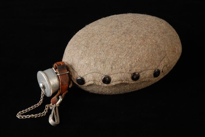 Aluminium veldfles in vilten foedraal, schroefdop aa...