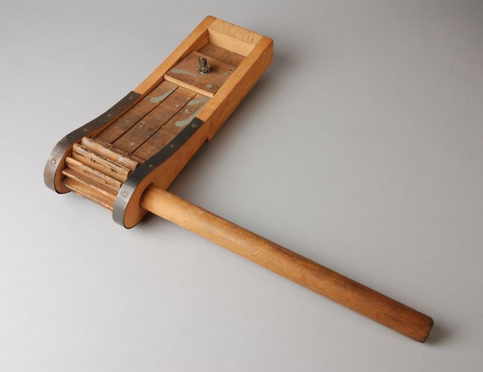 Groot runderhakmes met houten handvat, gebruikt in o...