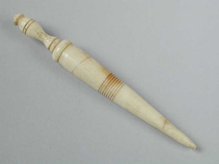 Zeer kleine priem en huls, beiden van bewerkt been m...