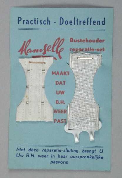 Klein blauw karton met twee onderdelen van BH-sluiti...