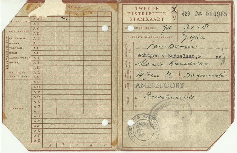Tweede Distributiestamkaart van Maria Hendrika van D...