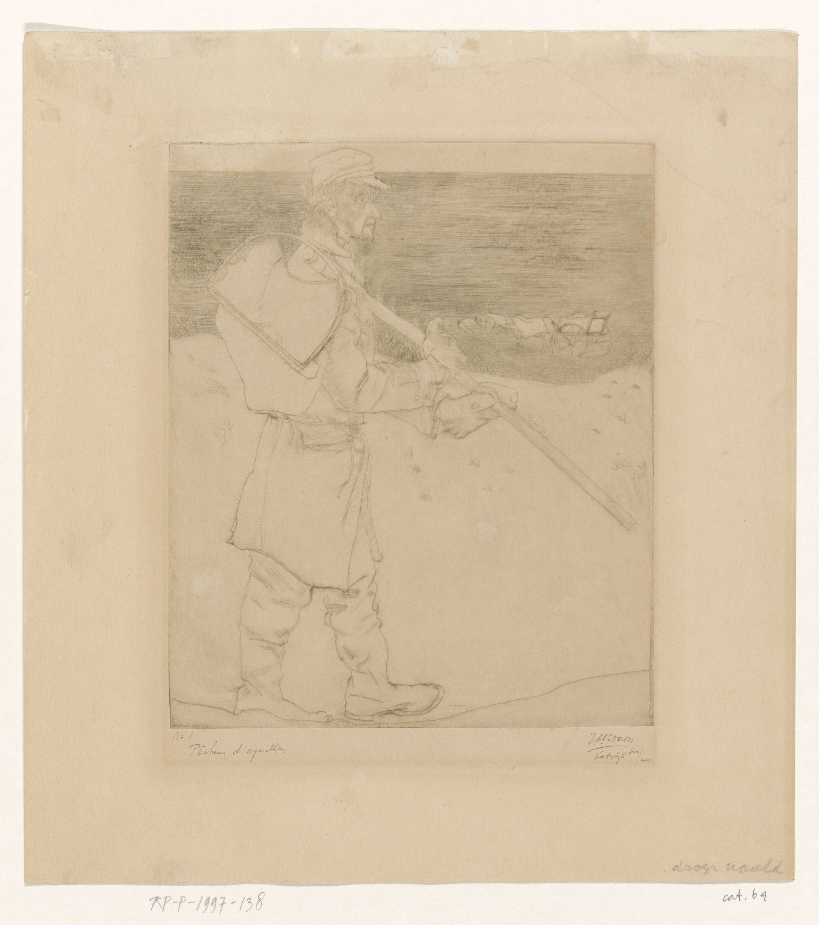 Schelpenvisser met net op het strand bij Katwijk aan...