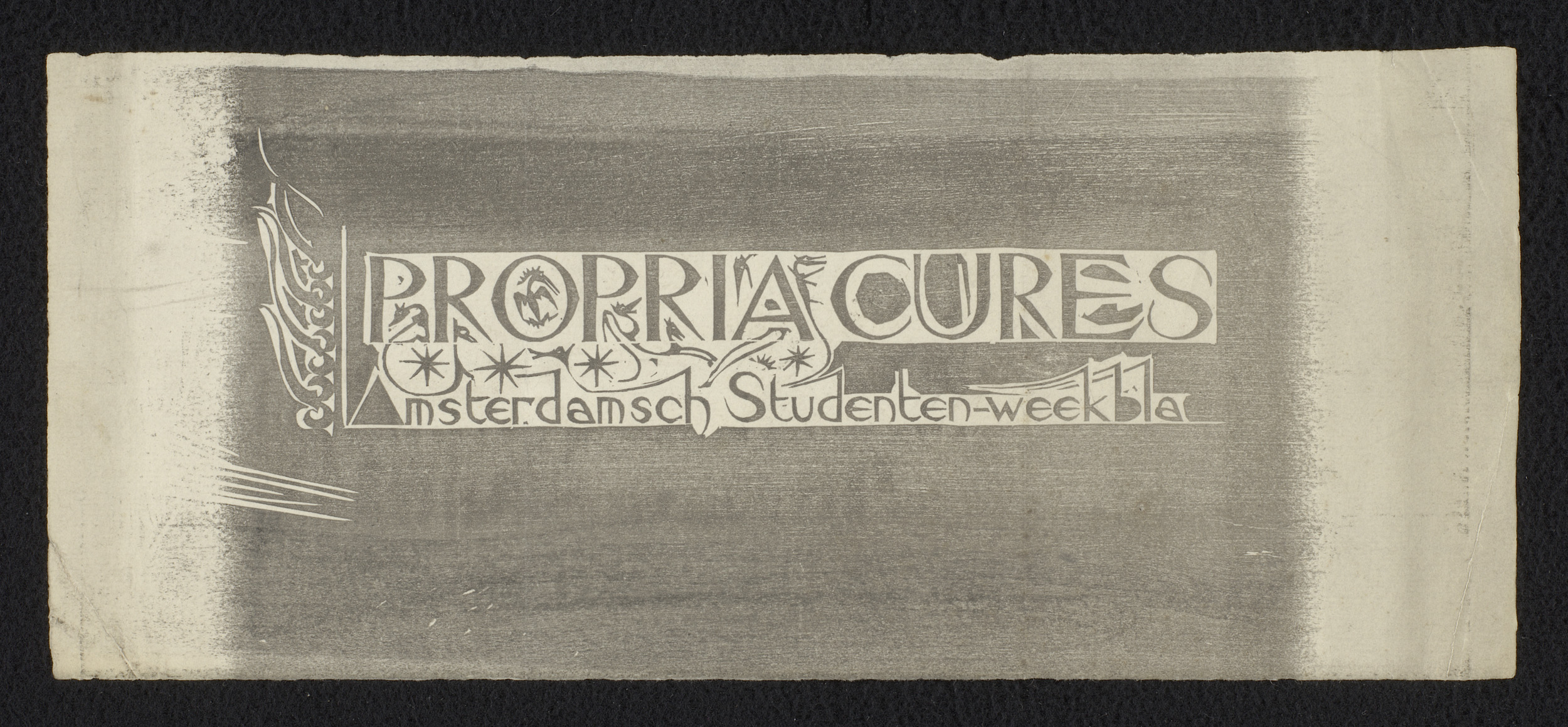 Titelhoofd voor: Propria Cures, Amsterdamsch student...