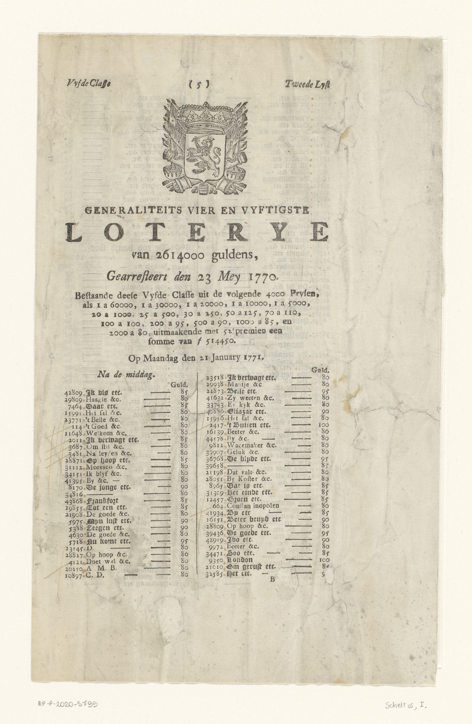 Uitslag van een loterij in de vijfde klasse op 21 ja...