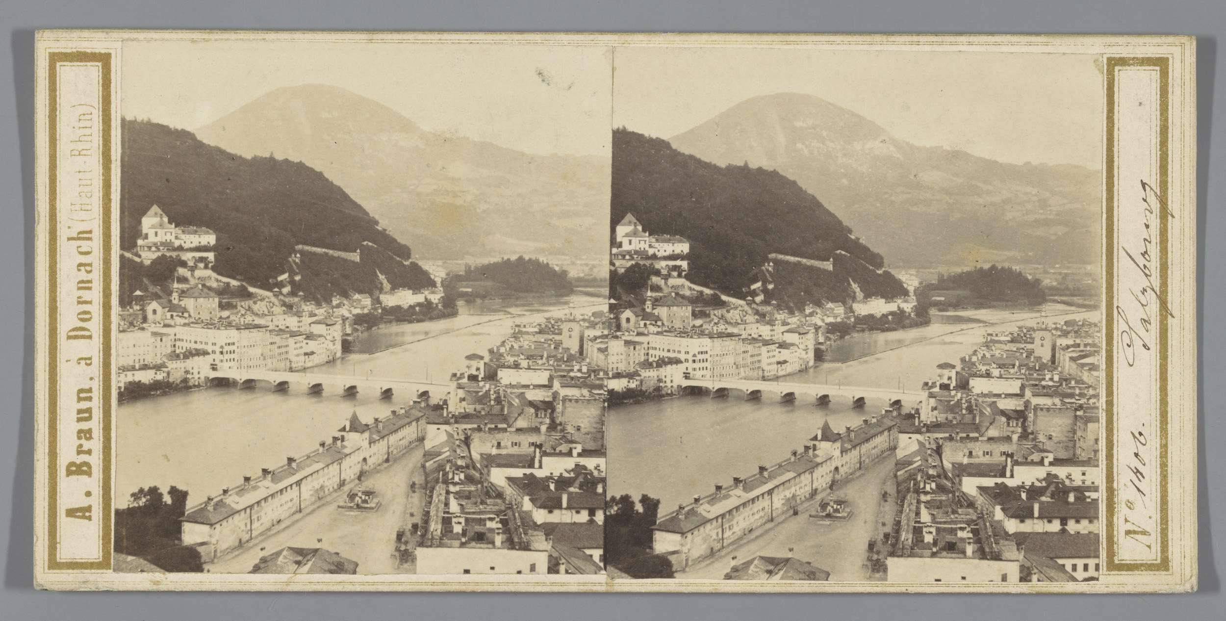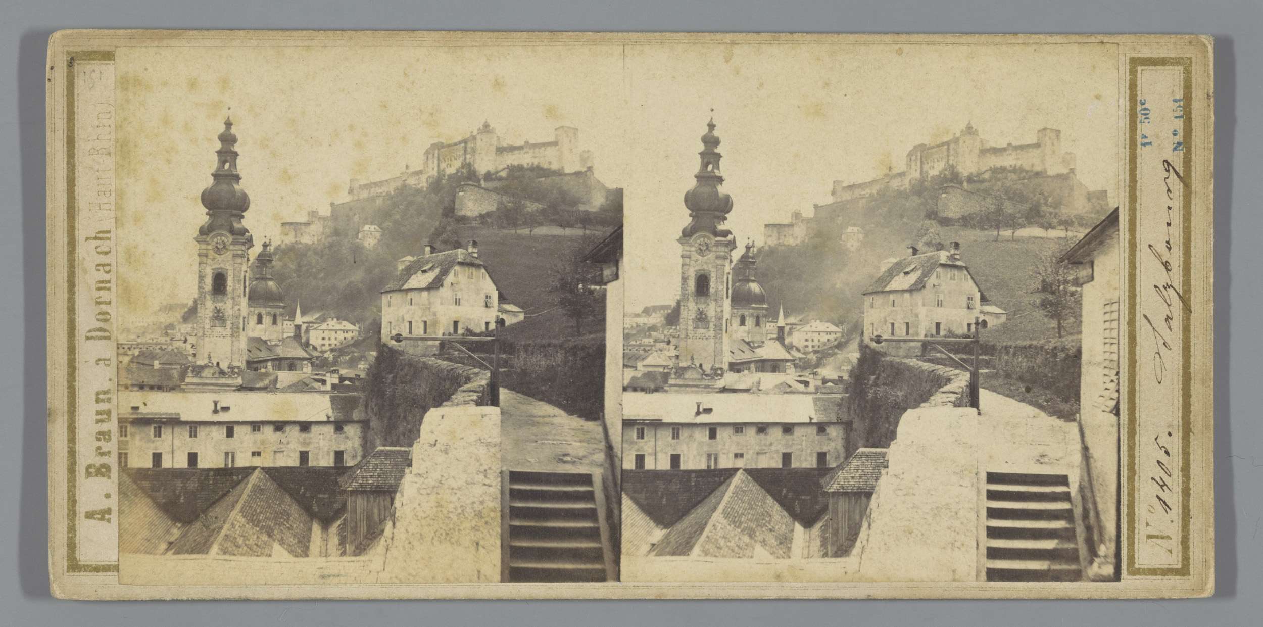 Gezicht op Salzburg. In de verte de vesting Hohensal...
