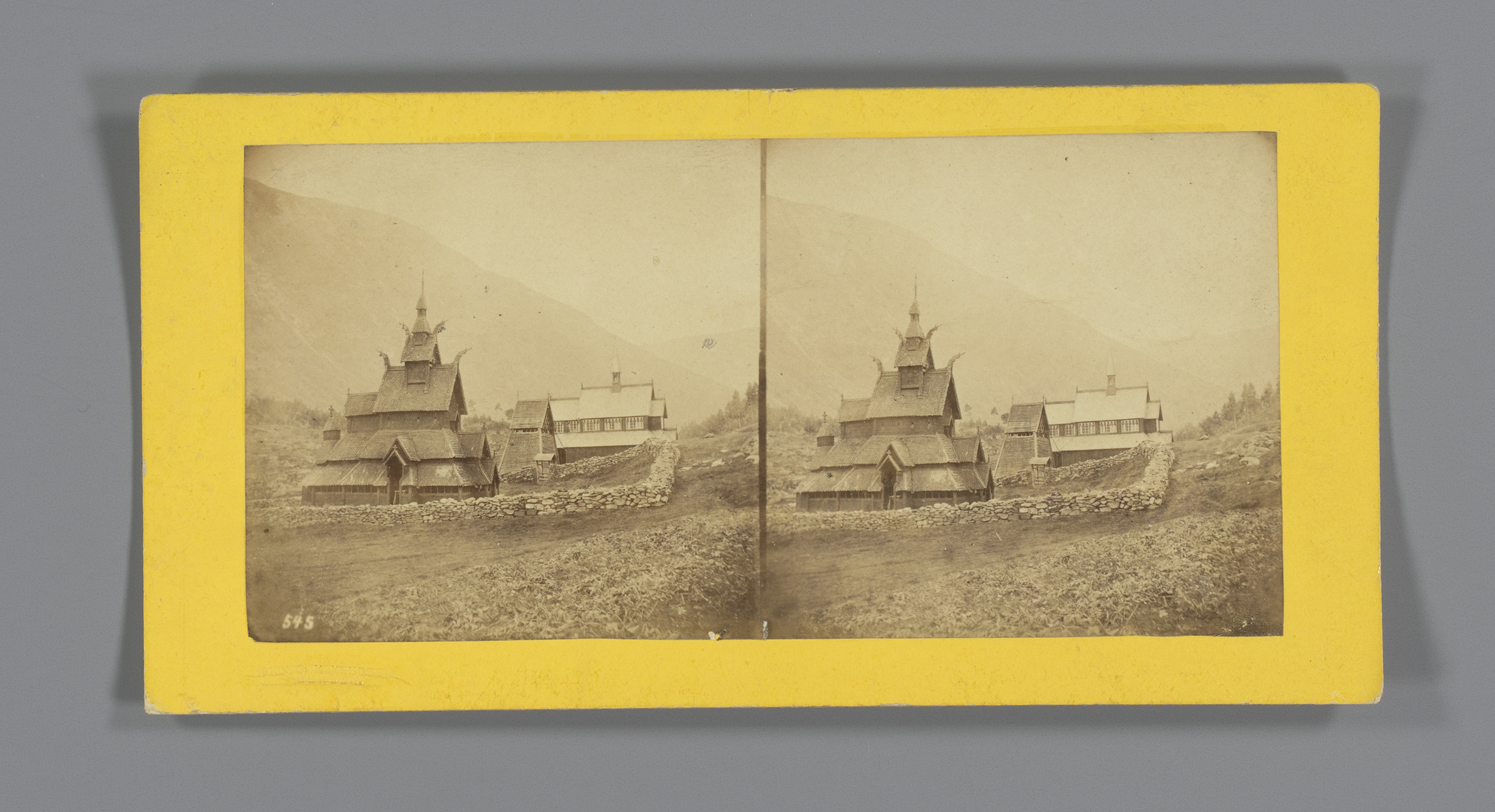 Gezicht op de staafkerk van Borgund, Noorwegen