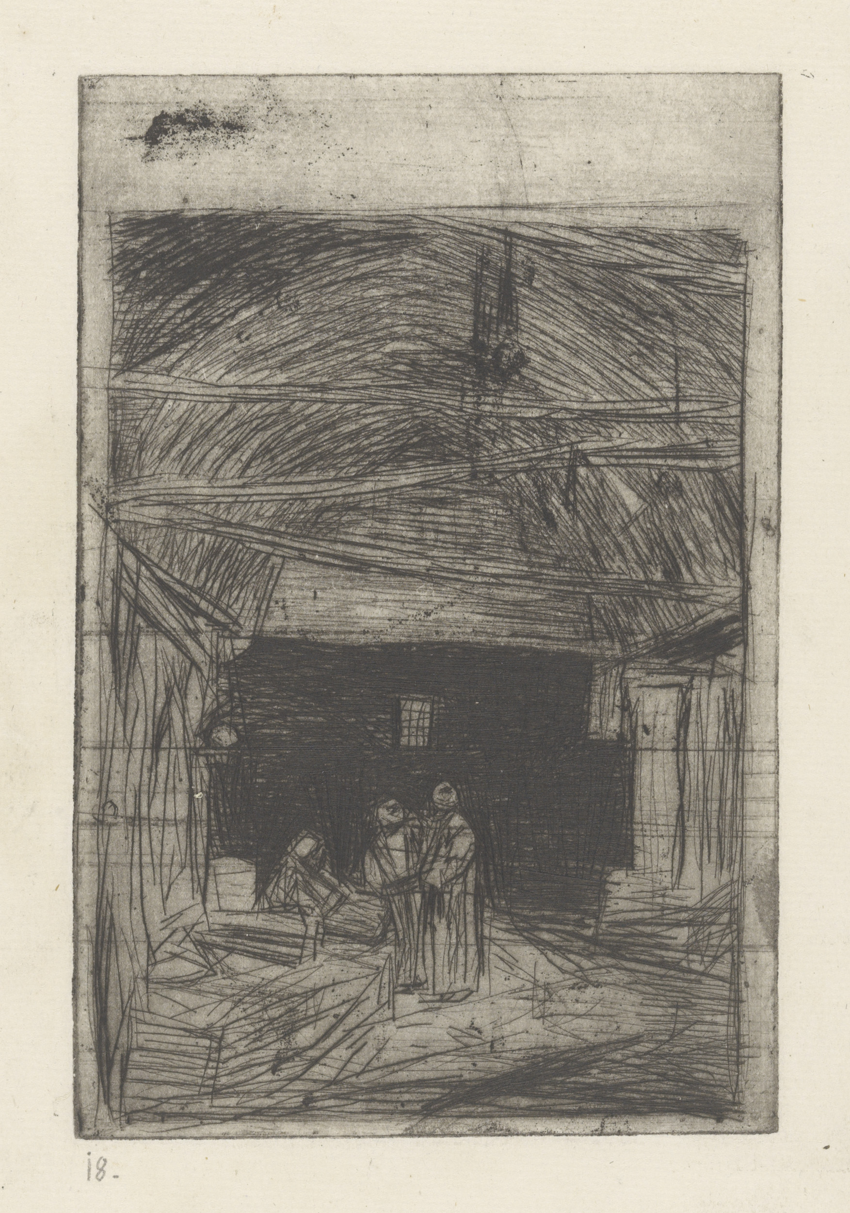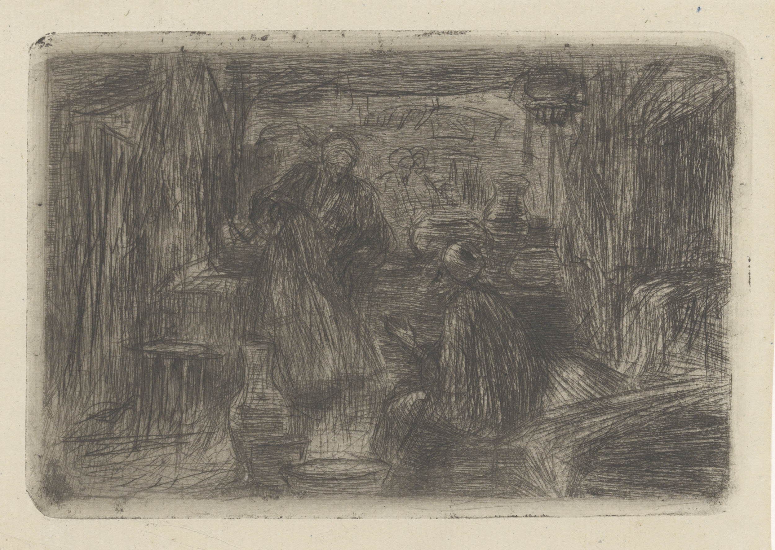 Zittende vrouw met hoofddeksel