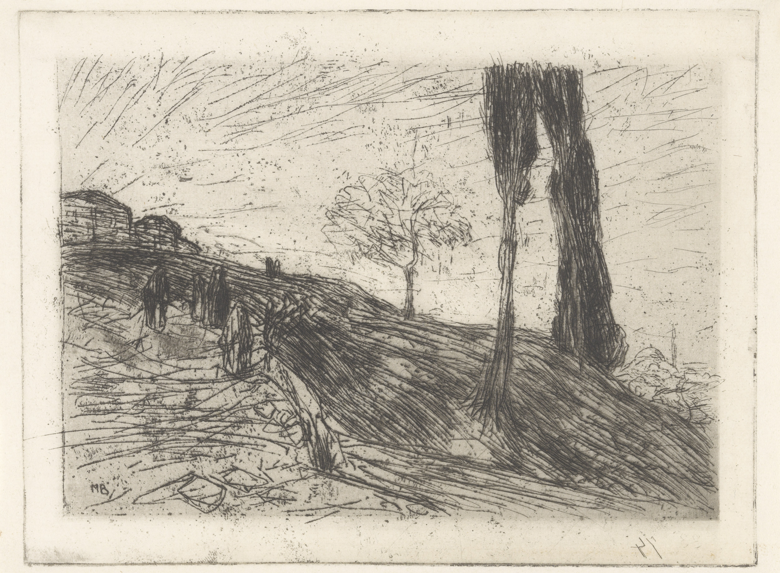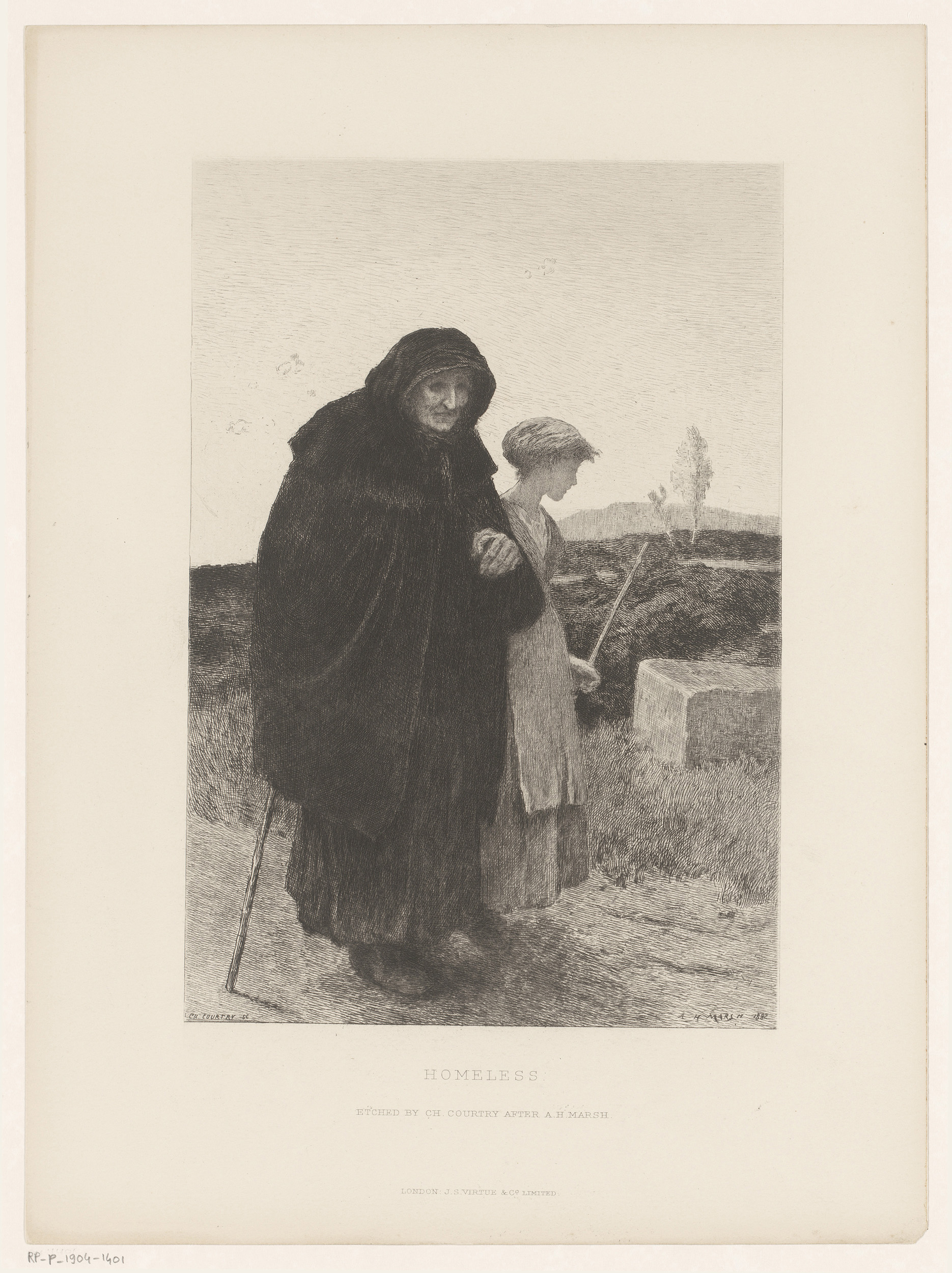 Landschap met een blinde oude vrouw en een jong meisje