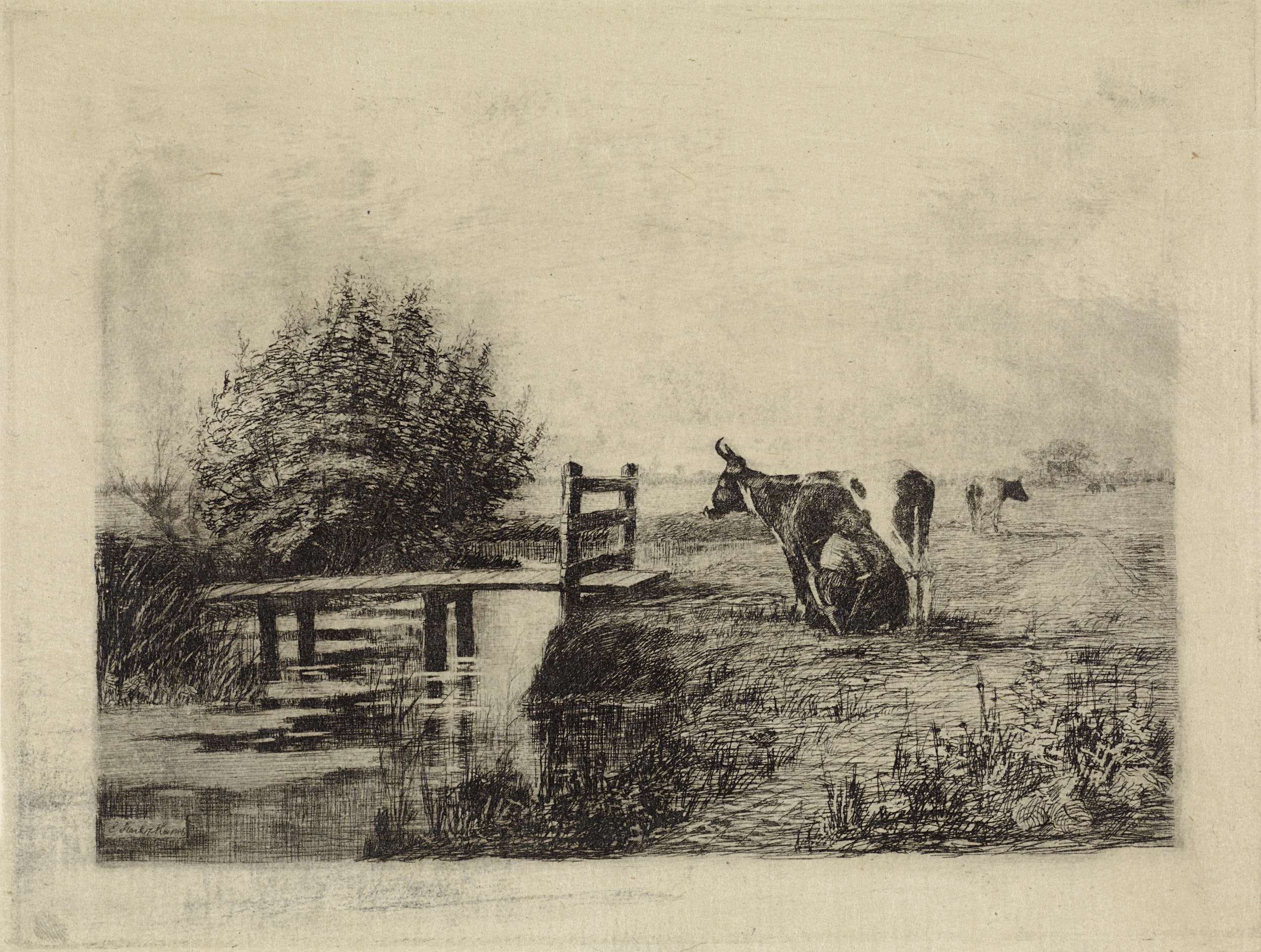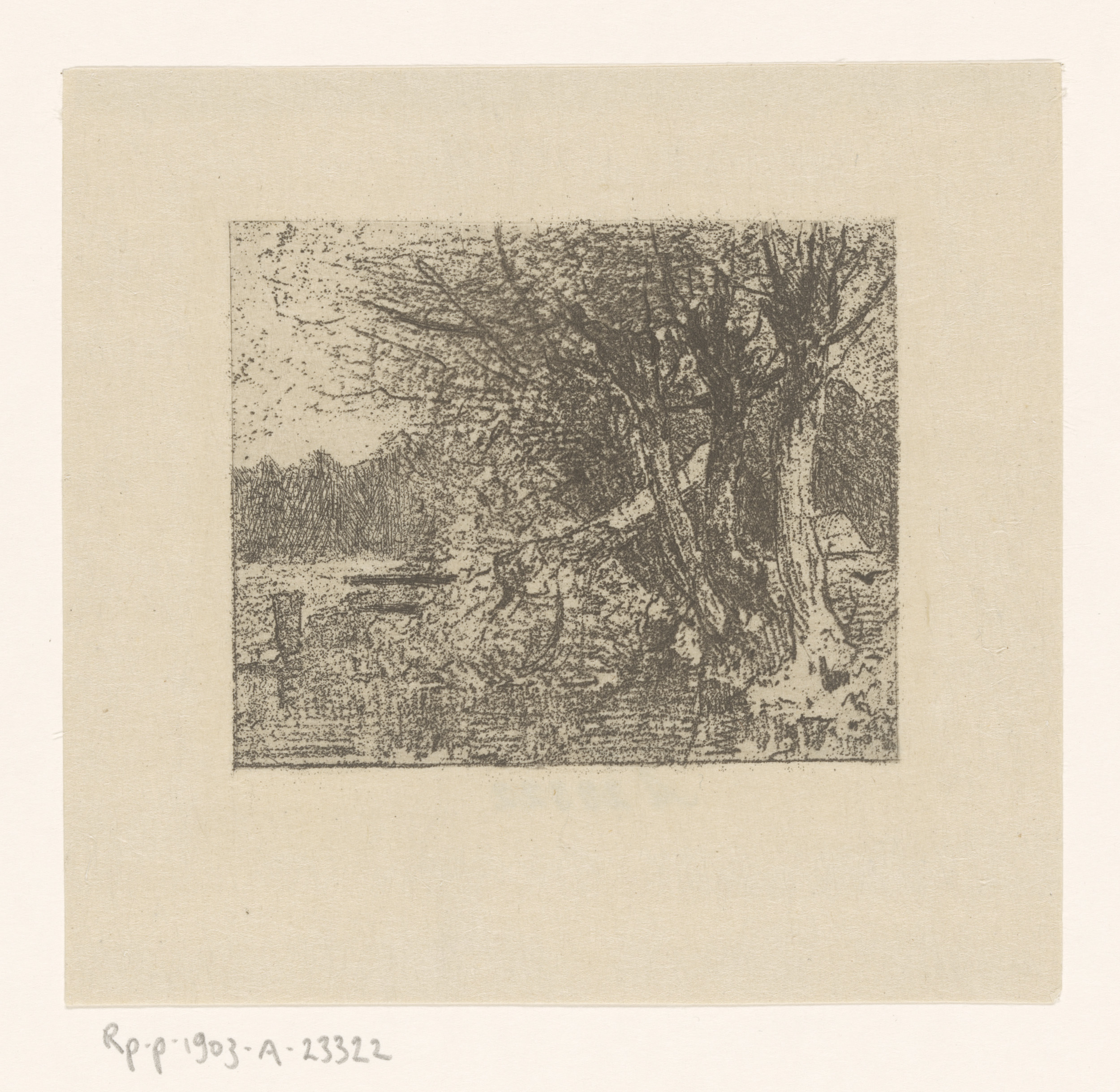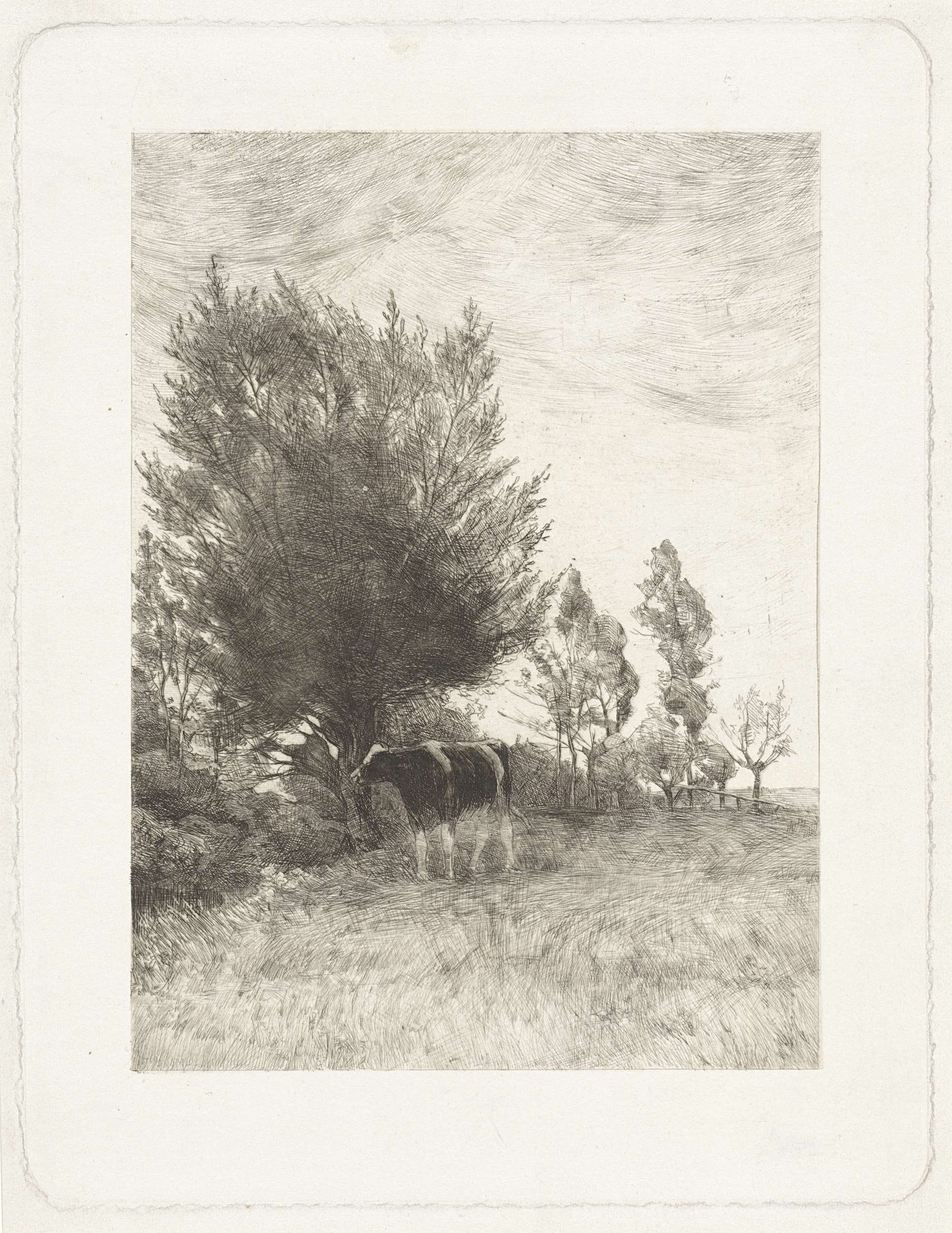 Landschap met koe bij boom