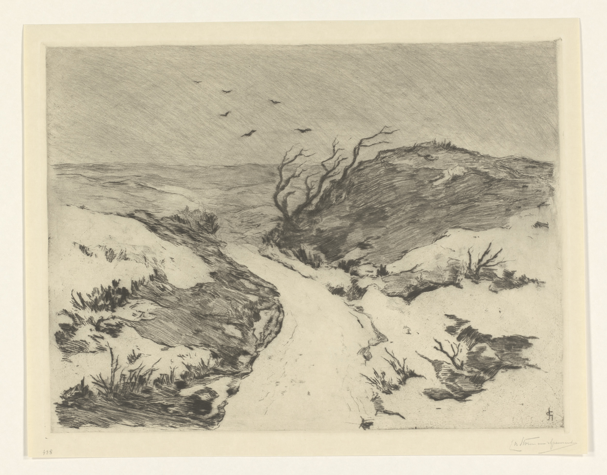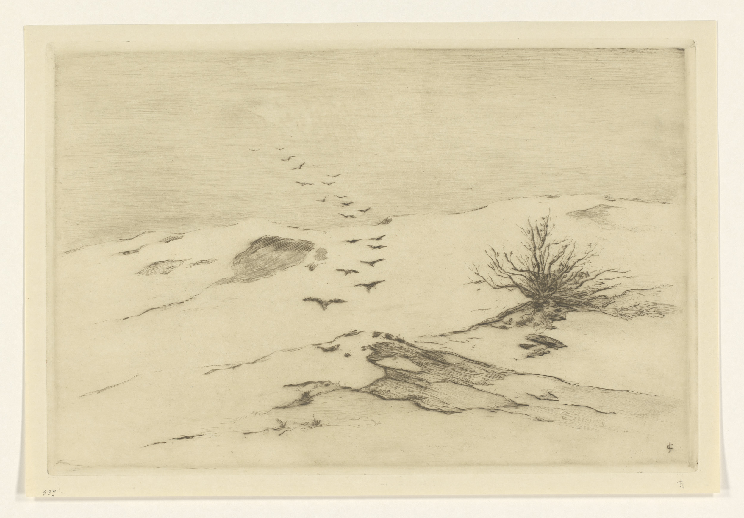 Vogels boven een duinlandschap