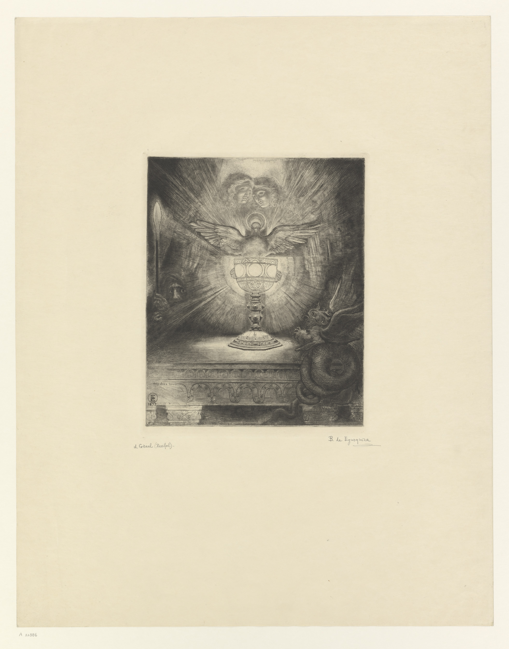 Heilige Geest als duif stijgt op uit de Heilige Graal