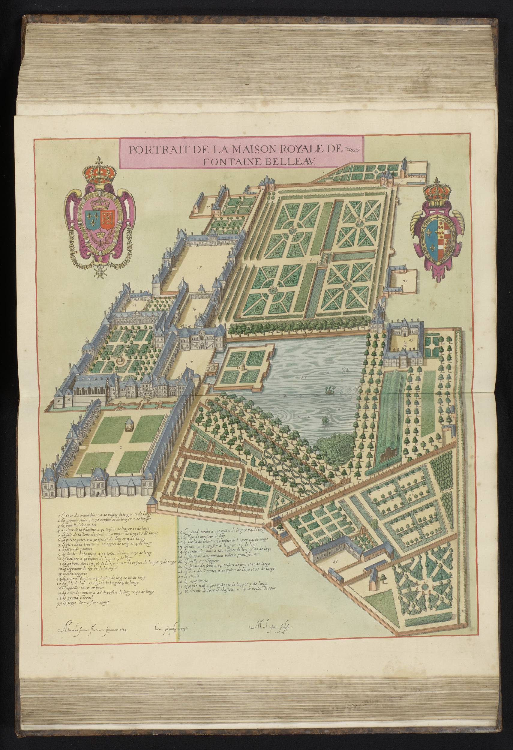 Gezicht op het paleis en de tuinen van Fontainebleau