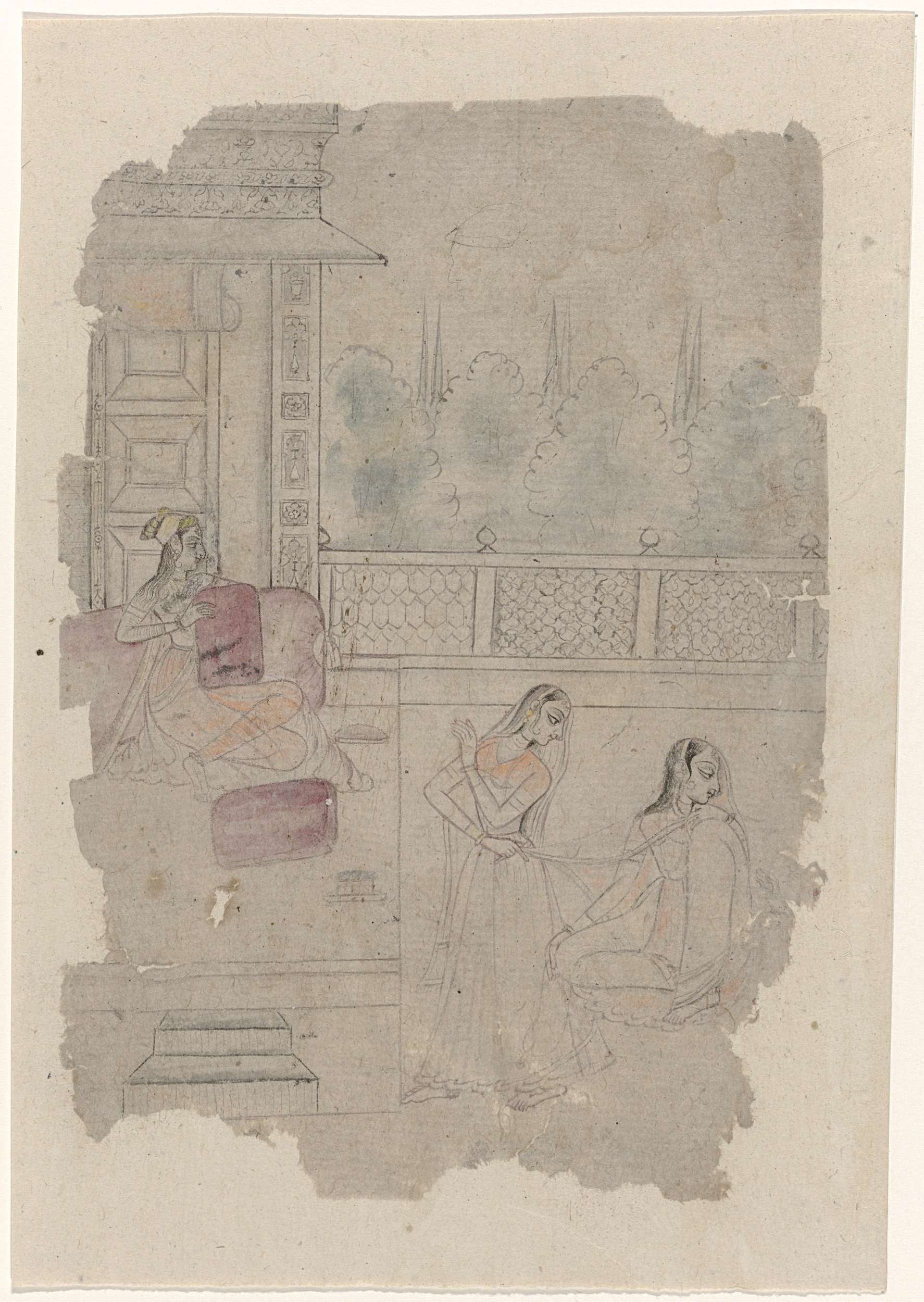 Liggende prinses met dienaressen