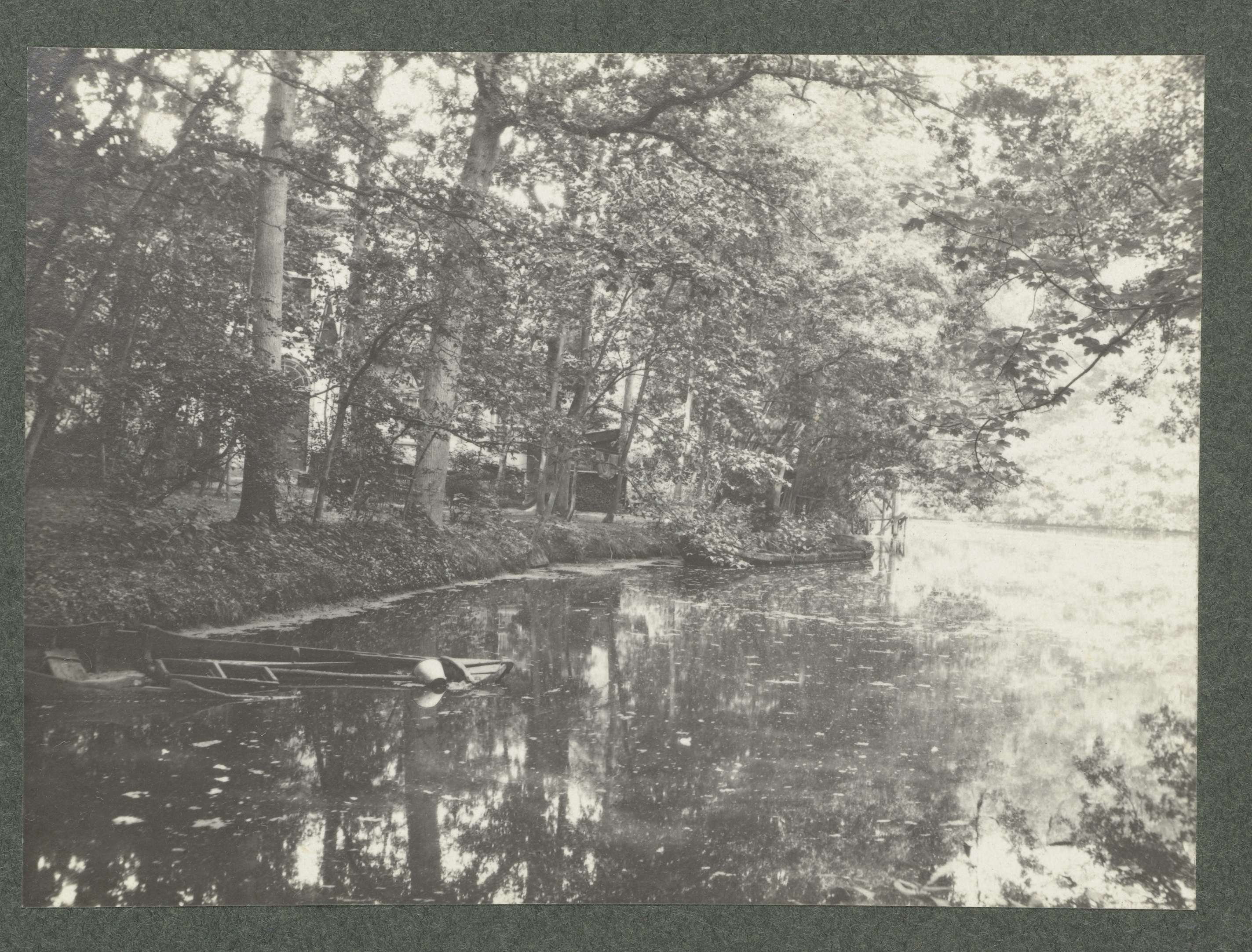 Ondergelopen roeiboot in een dicht beboste omgeving