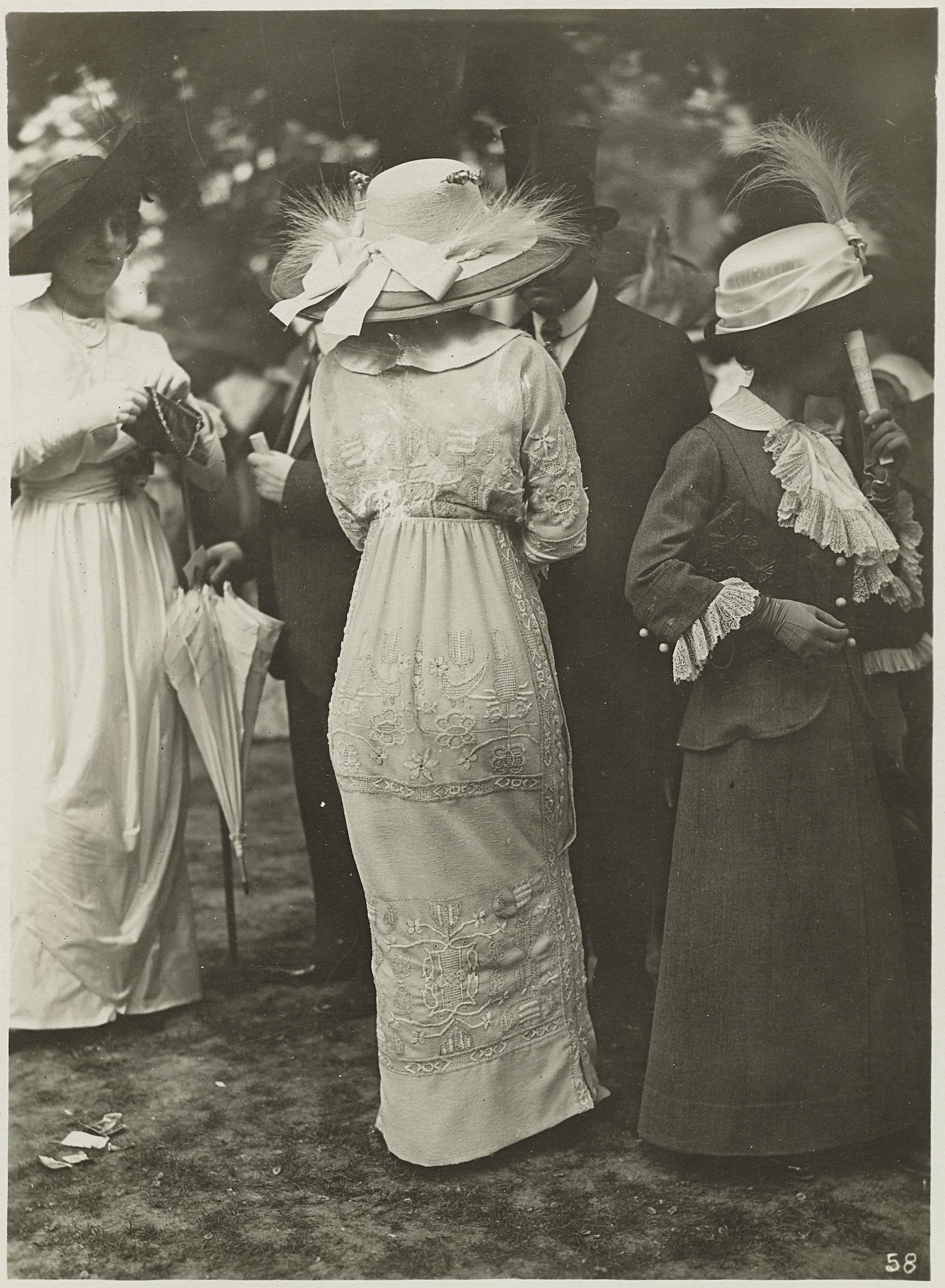 Drie dames bij de Hippodrome de Longchamp tijdens pa...