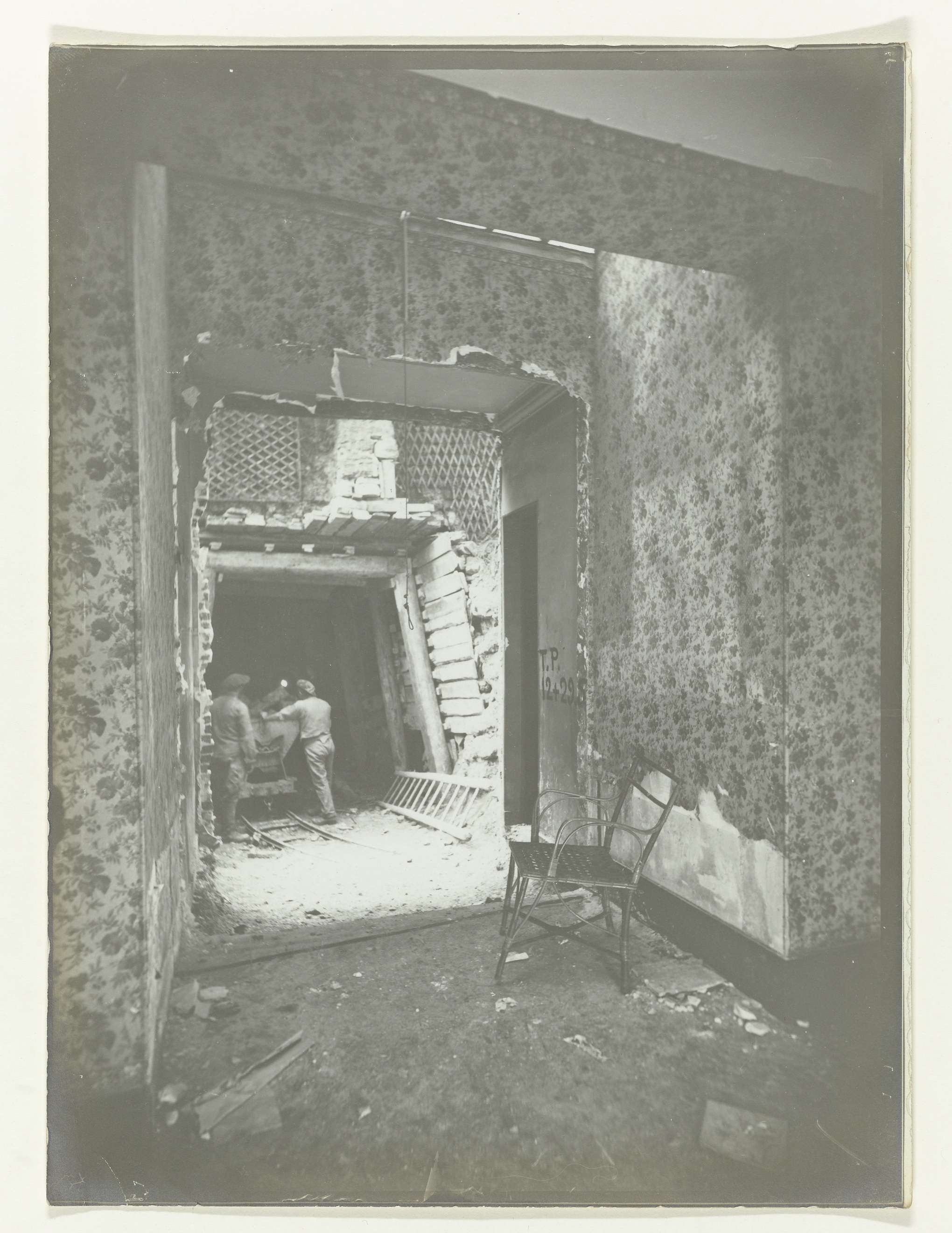 Arbeiders in een huis dat gesloopt wordt ten behoeve...