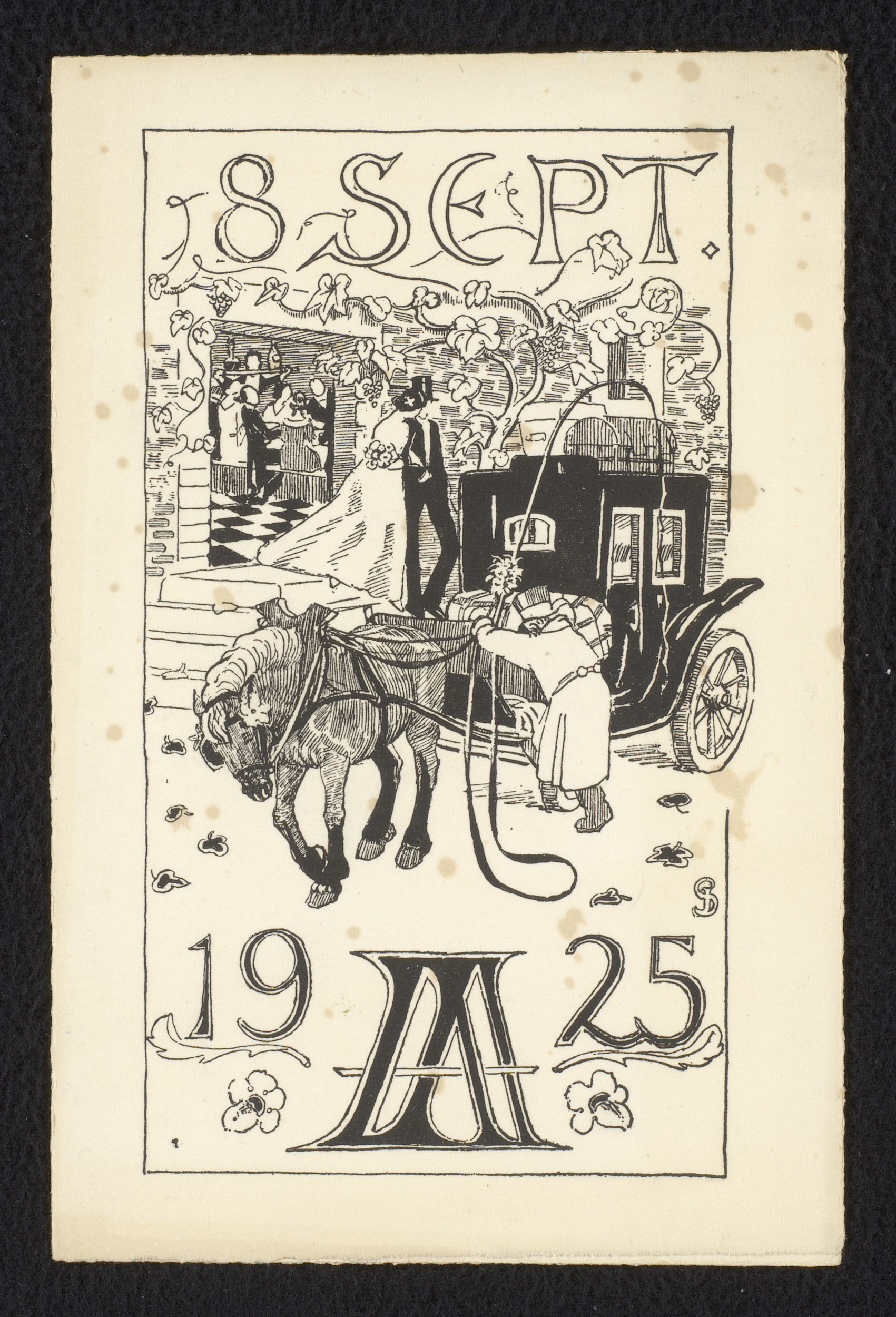 Menukaart voor een huwelijk op 8 september 1925