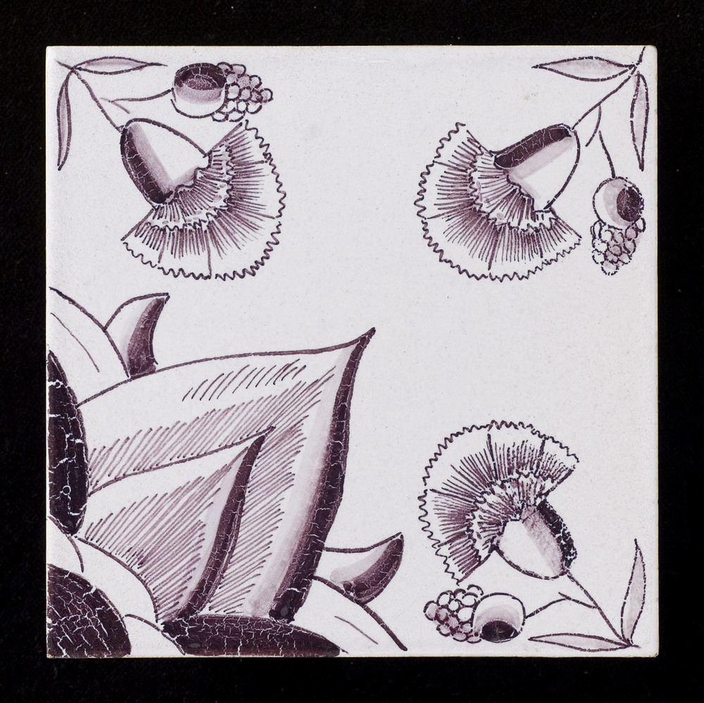 Tegel in onderglazuur, met voorstelling: ornament, d...
