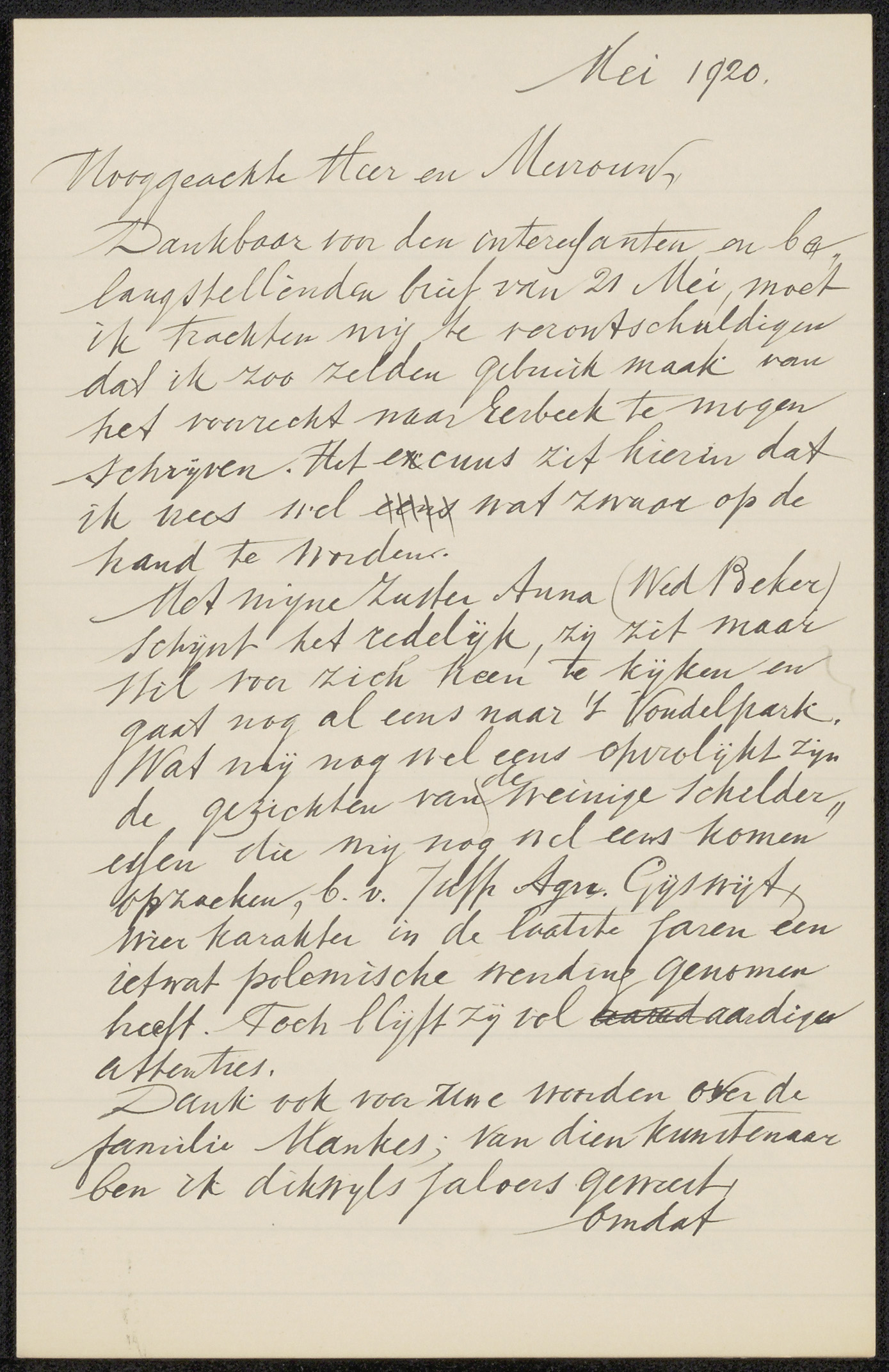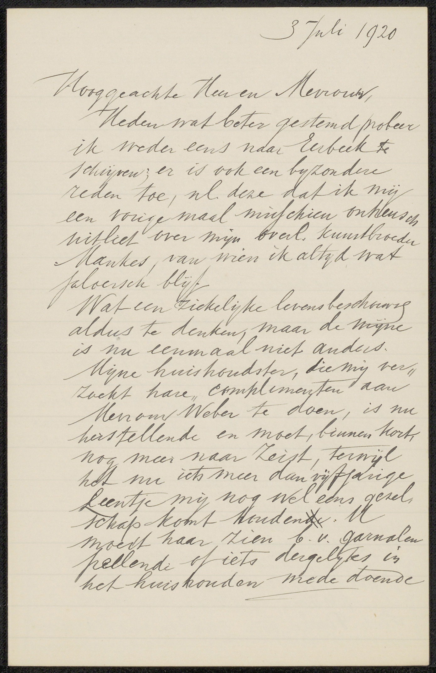 Brief aan Max Wilhelm Carl Weber en Anne Antoinette ...