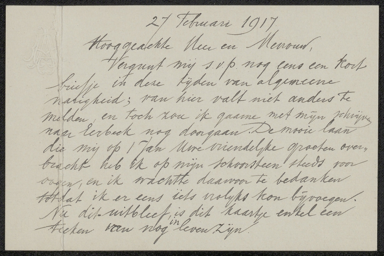 Brief aan August Max Wilhelm Carl Weber en Anne Anto...