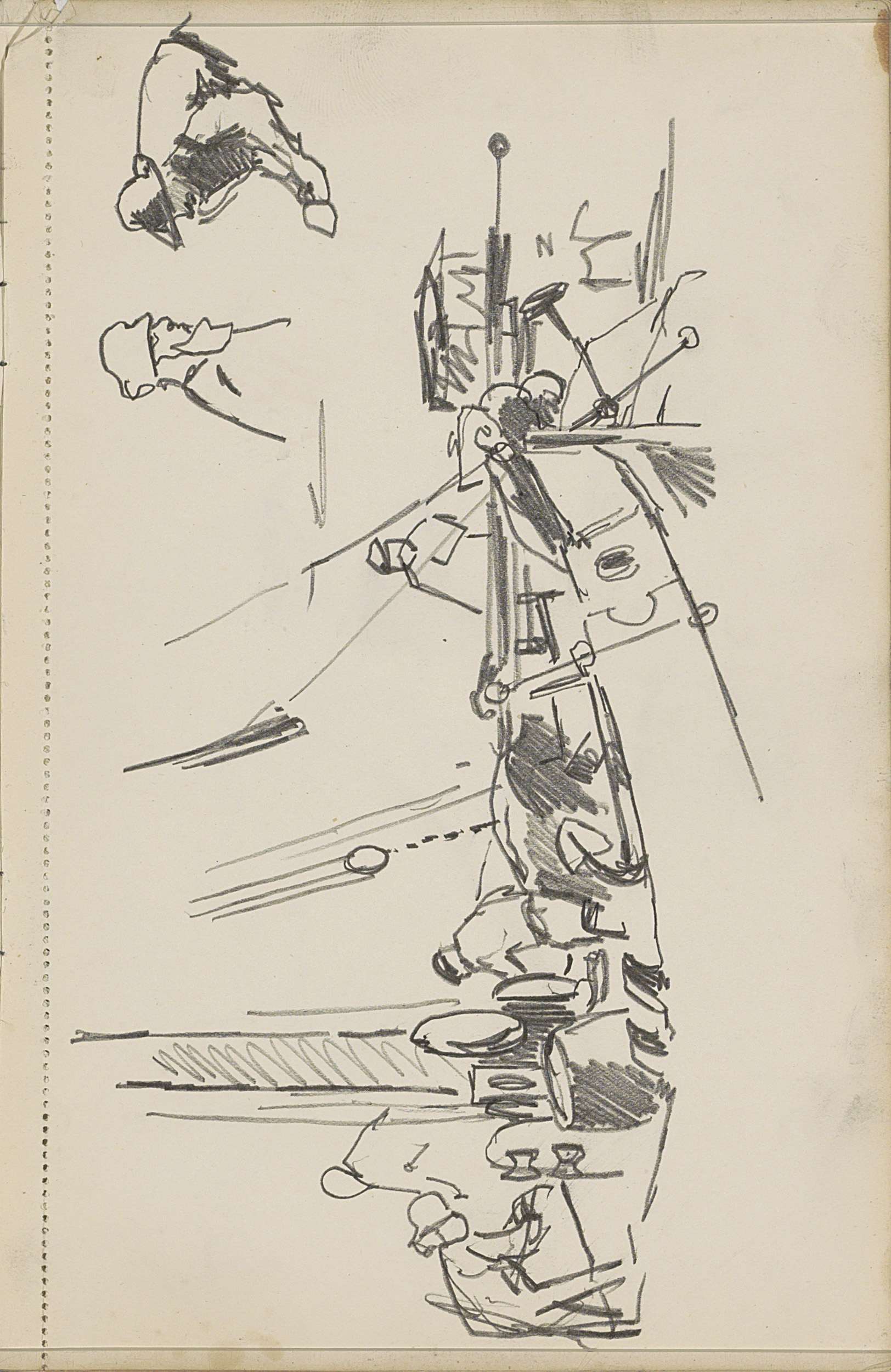Werklieden op een zeilschip