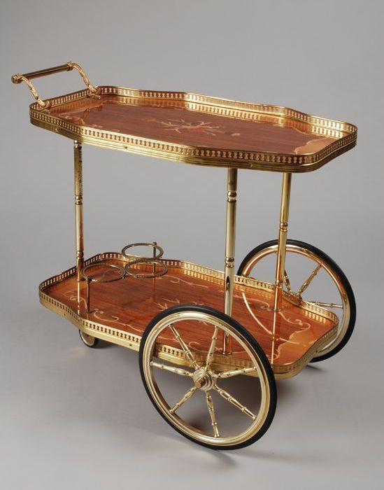 Uit de woonkamer van Tante Nel: theewagen met bladen...