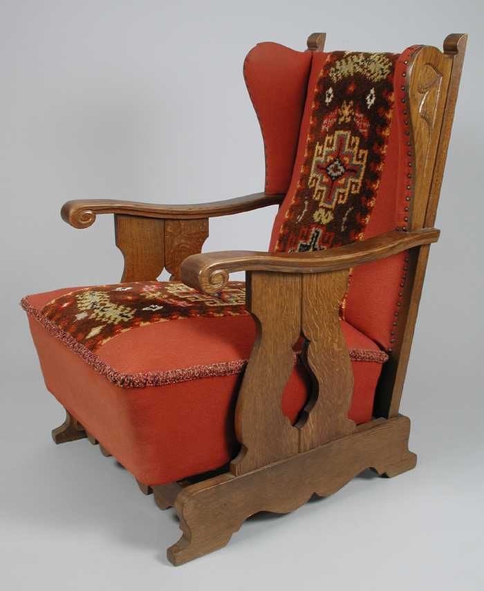 Uit de woonkamer van Tante Nel: eikenhouten armstoel...