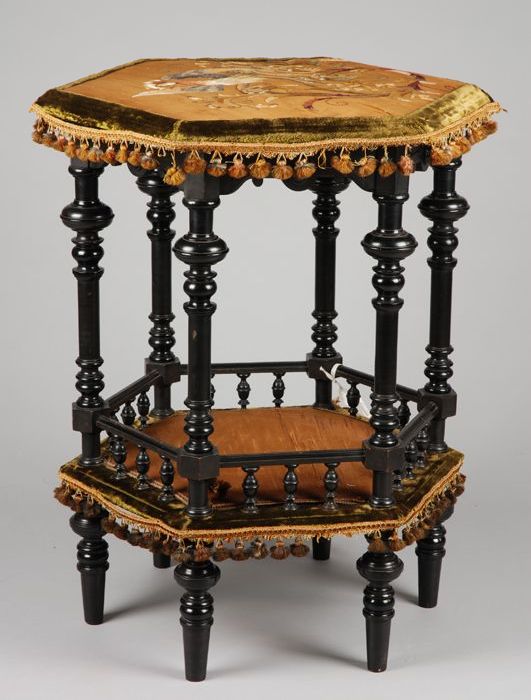 Zes-hoekig zwart gepolitoerd neobarok salontafeltje