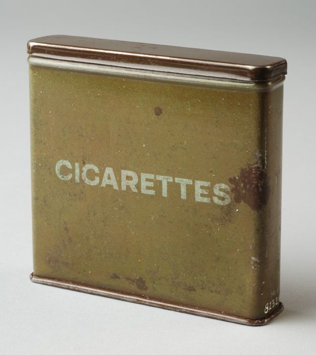 Legergroen sigarettenblik, onderzijde voorzien van r...
