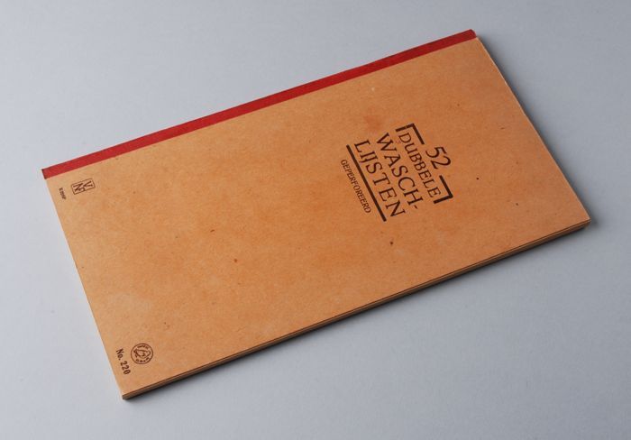 Boekje met 52 dubbele "WASCHLIJSTEN" en enkele etike...