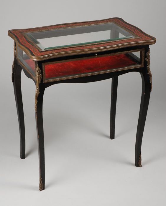 Zwart gepolitoerde neo-rococo vitrinetafel