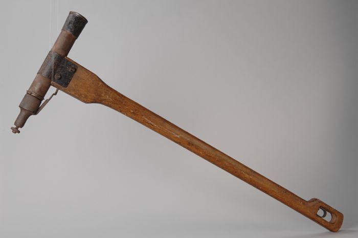 Houten stelten, met in potlood opschrift "FOKJE"