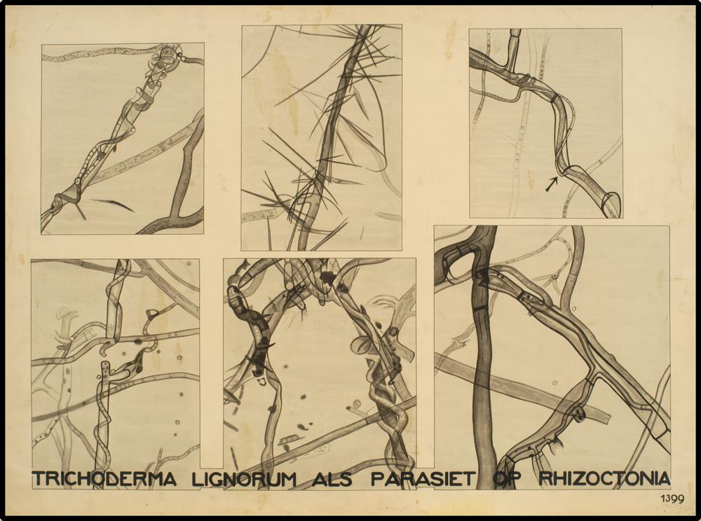 Trichoderma lignorum als parasiet op Rhizoctonia